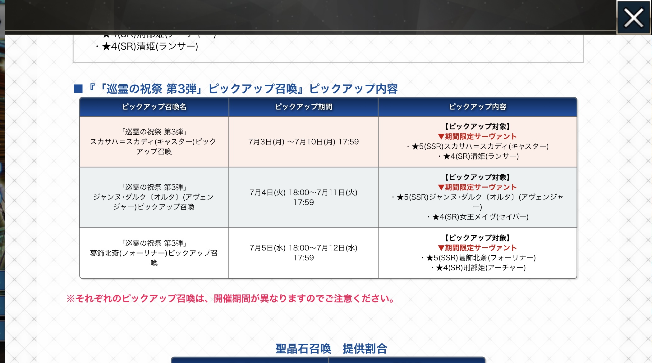 R18関連話題、よくてよ無しのガチャ結果、実装から二週間以内のシナリオ及び開催期間中のイベント内容、進行度依存の報酬、最終再臨や霊衣解放の画像や話題は専用スレにてお願いします。