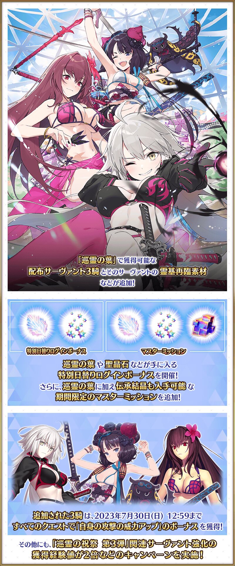 水着のゲイボルクって三節棍バージョンもあるんだっけかてかちょっと待てよ巡霊入りしたらイラストあるってことは……