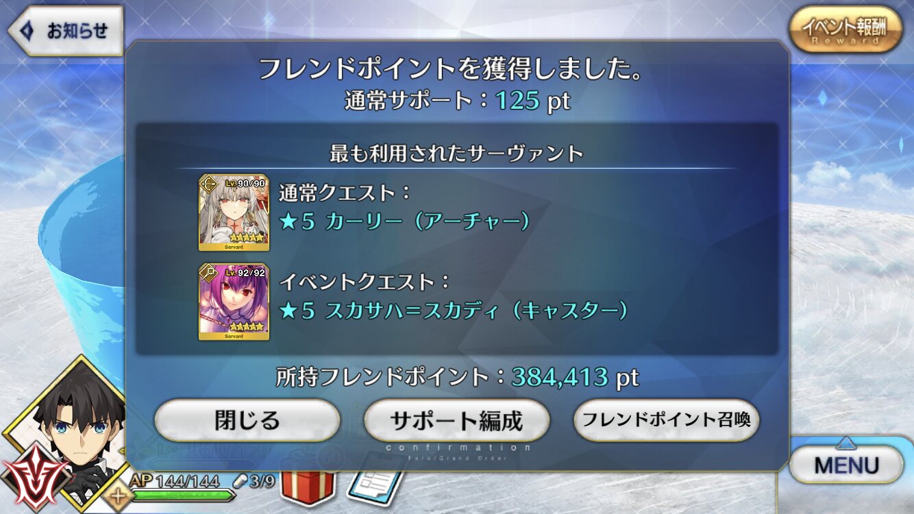 確定大成功とか全鯖経験値2倍キャンペーンやらねぇかなぁ!!!!人類救済は分からないけど、カルデア救済ならやらないと行けないことはある。もし、全てを取り戻してなお責任取らないといけないのなら、人類最後のマスターの仕業にすることだ。誇張抜きでまじのマジで