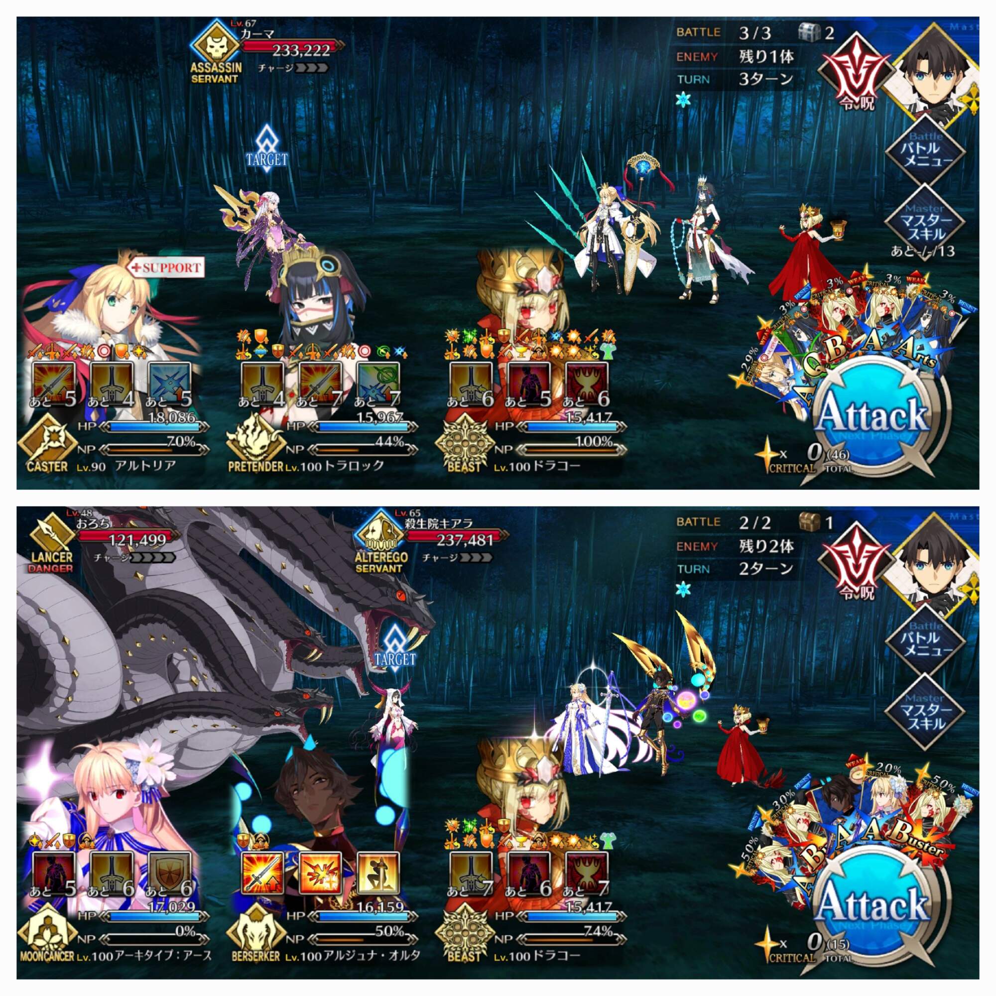 アーツ攻撃宝具はサポがチャージしてくれるから