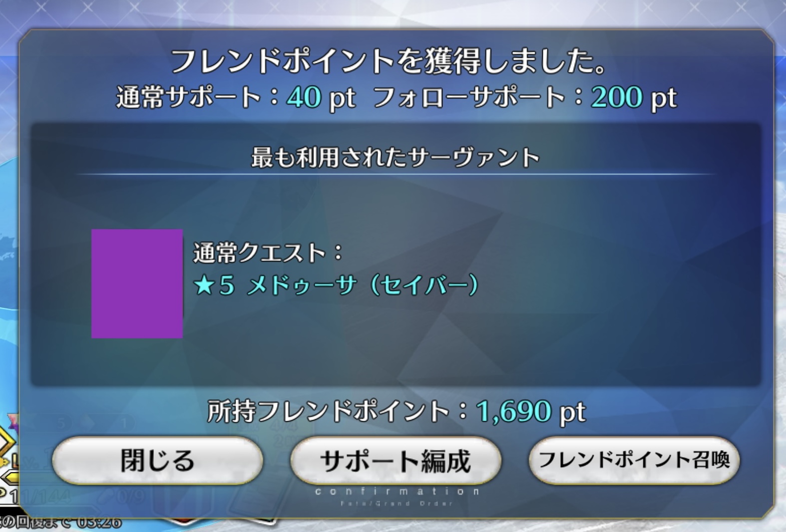 そういやストガチャで思い出したんだけど、今朝貰った石60個でドゥルガーガチャ二十二連回したらキルケーが二回連続で来たわ。