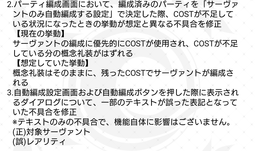 R18関連話題、よくてよ無しのガチャ結果、実装から二週間以内のシナリオ及び開催期間中のイベント内容、進行度依存の報酬、最終再臨や霊衣解放の画像や話題は専用スレにてお願いします。