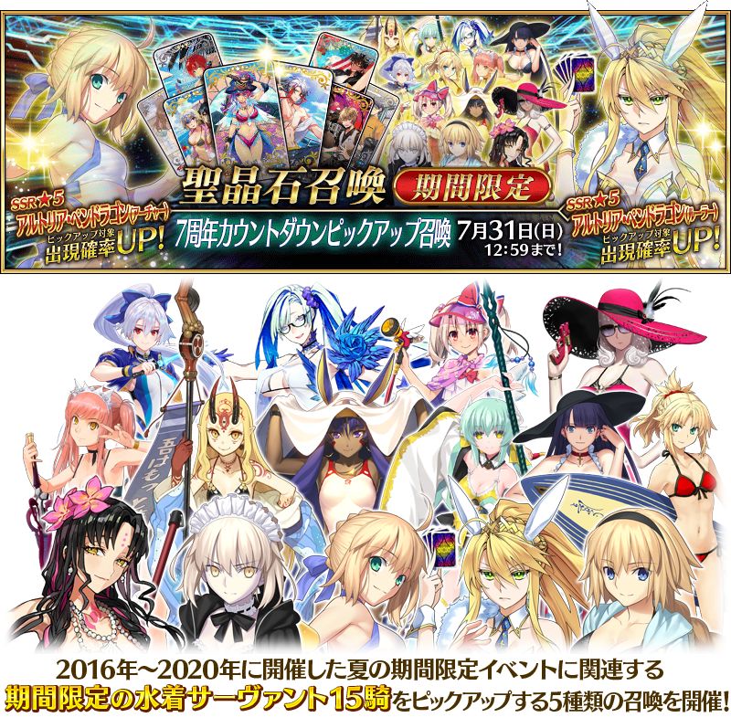 水着鯖はまぁ2部6章登場鯖なんかを中心に色々予想を見るけど周年鯖の方はマジで全然よねぇ…誰が来るのやら…>>925