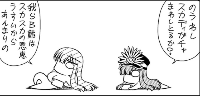 (扇子で虚空に赤い線を引きながら)盾乙〜