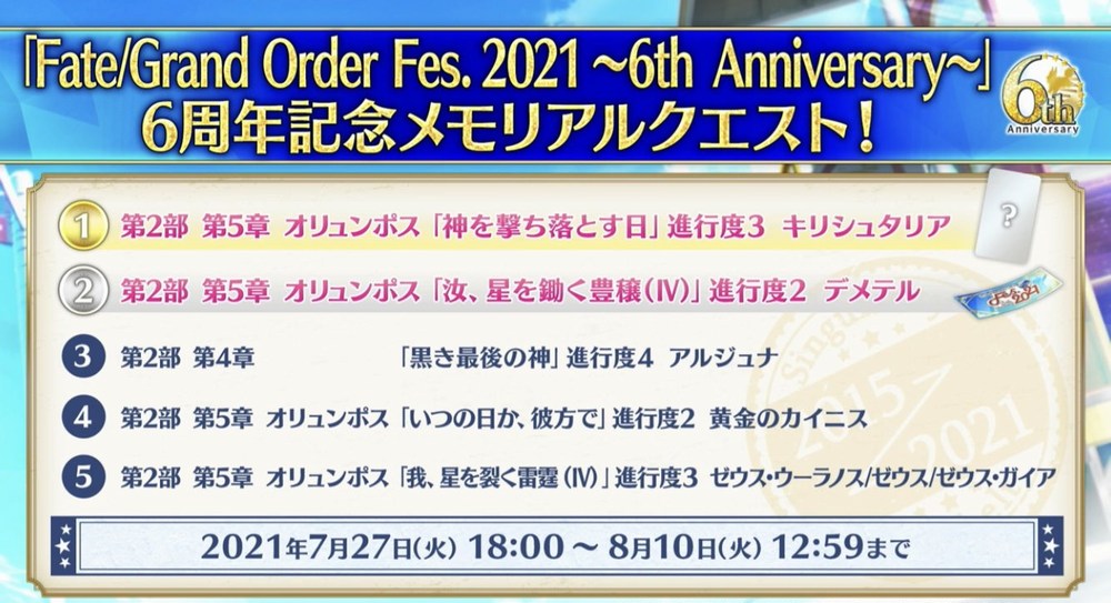 R18関連話題、よくてよ無しのガチャ結果、実装から二週間以内のシナリオ及び開催期間中のイベント内容、進行度依存の報酬、最終再臨や霊衣解放の画像や話題は専用スレにてお願いします。