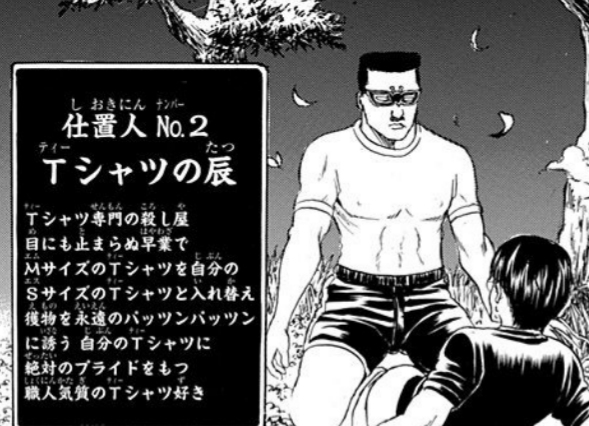 (厳密には背中に浮かぶ字は『天』だが。)Tシャツ専門の殺し屋