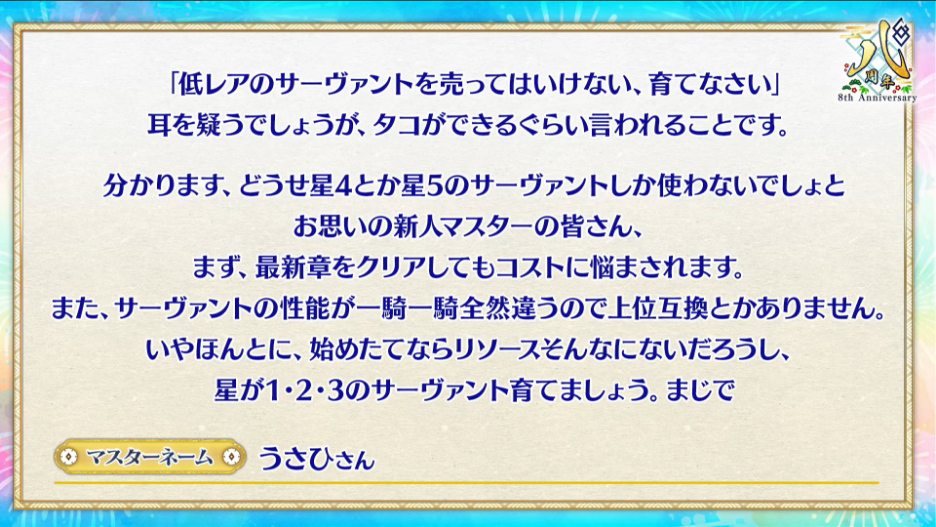 低レア鯖なユニークスキル持ちも多いし、育成は実際大事