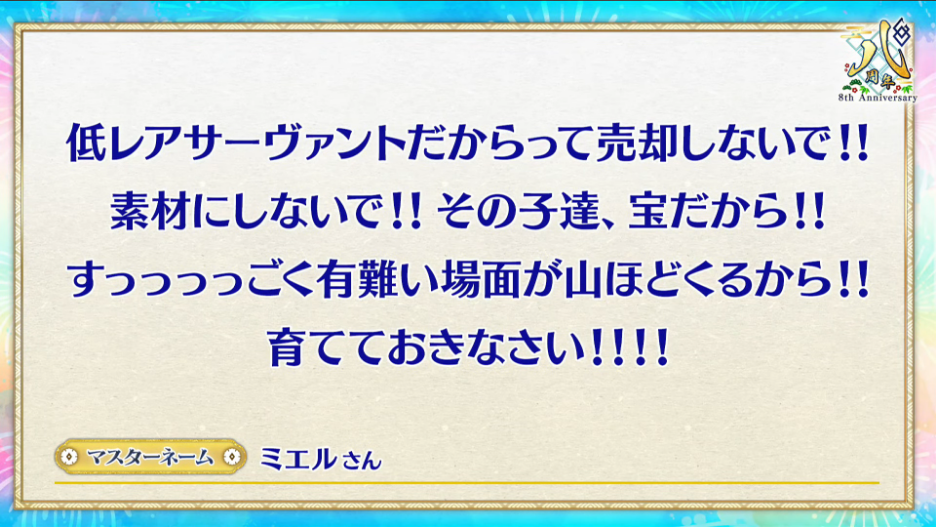 今は宝具の関係でなかなか聞けないボイス来たな……>>43
