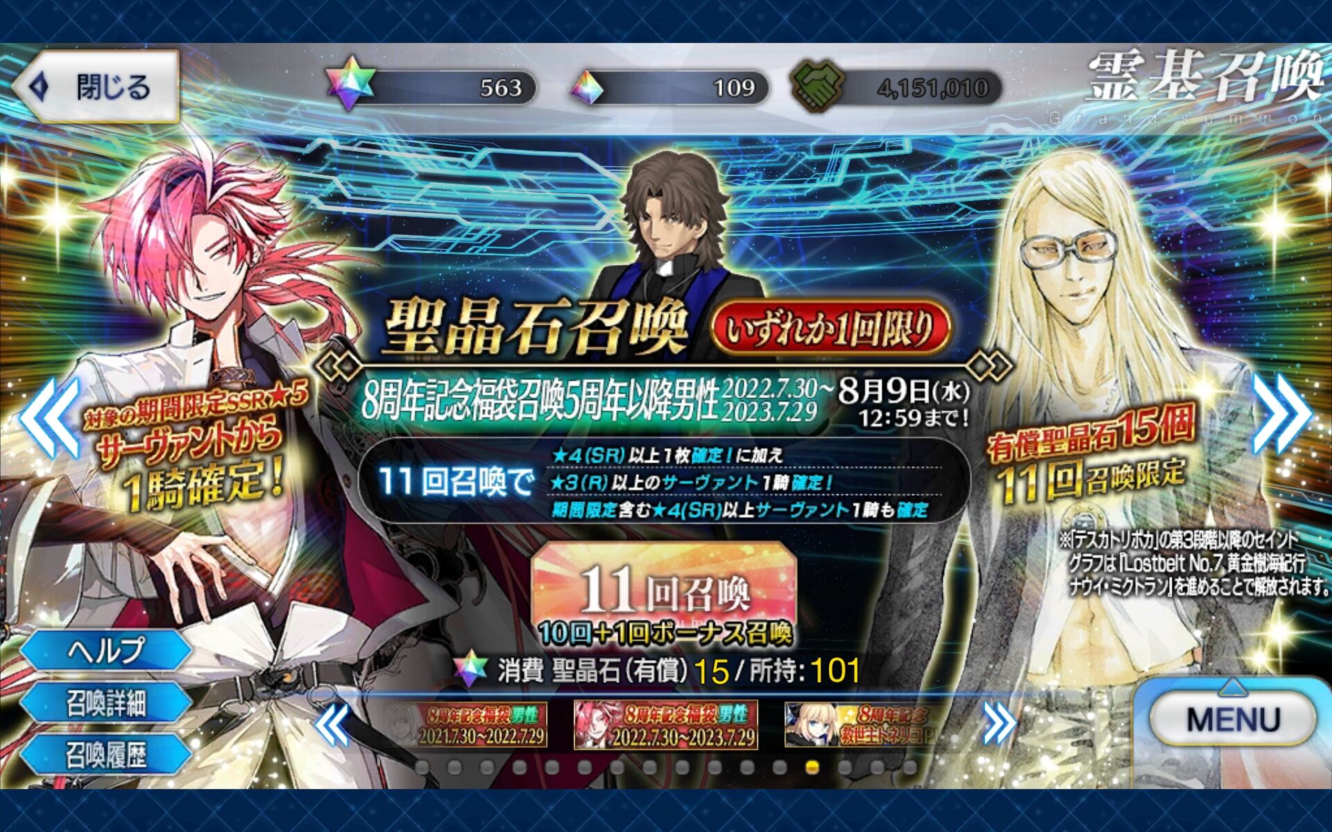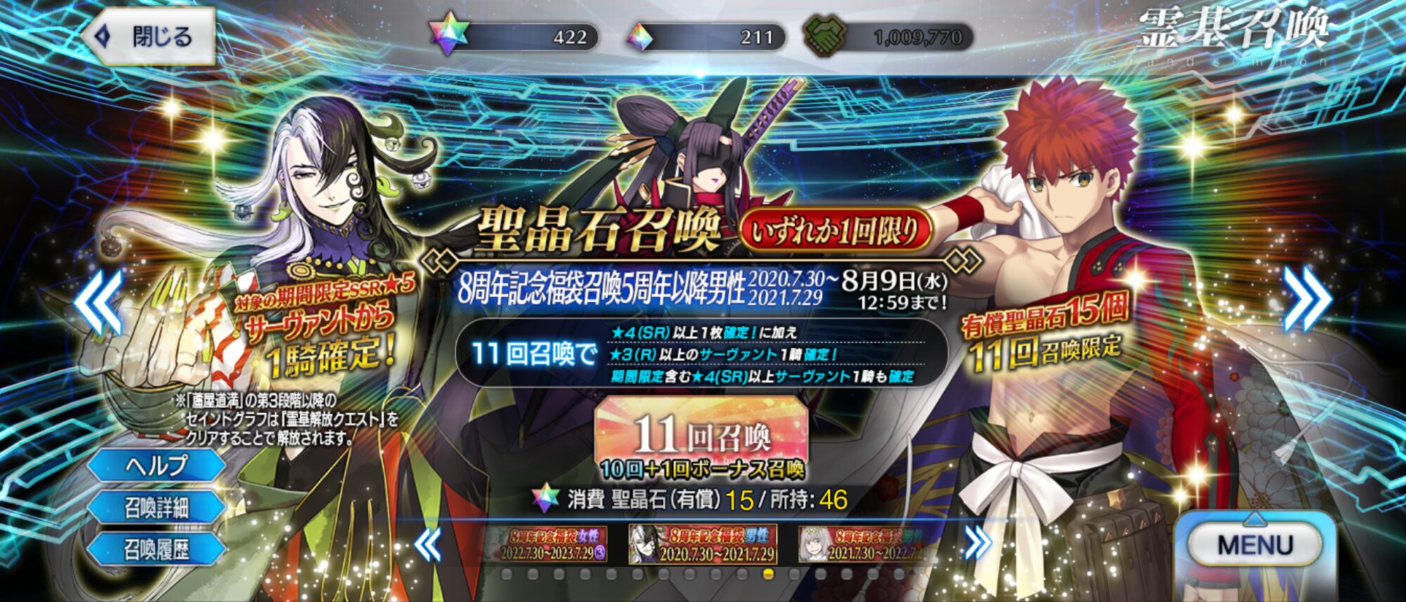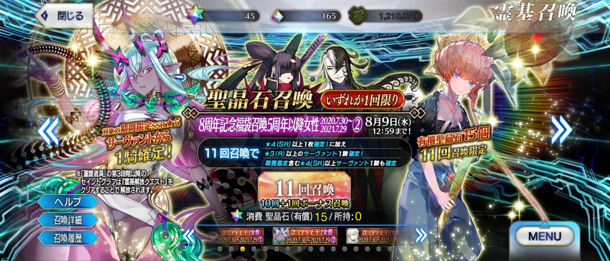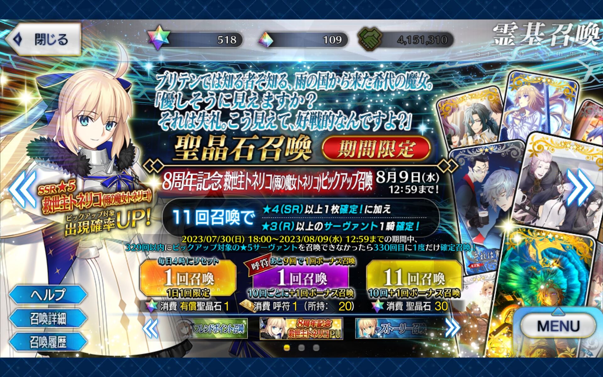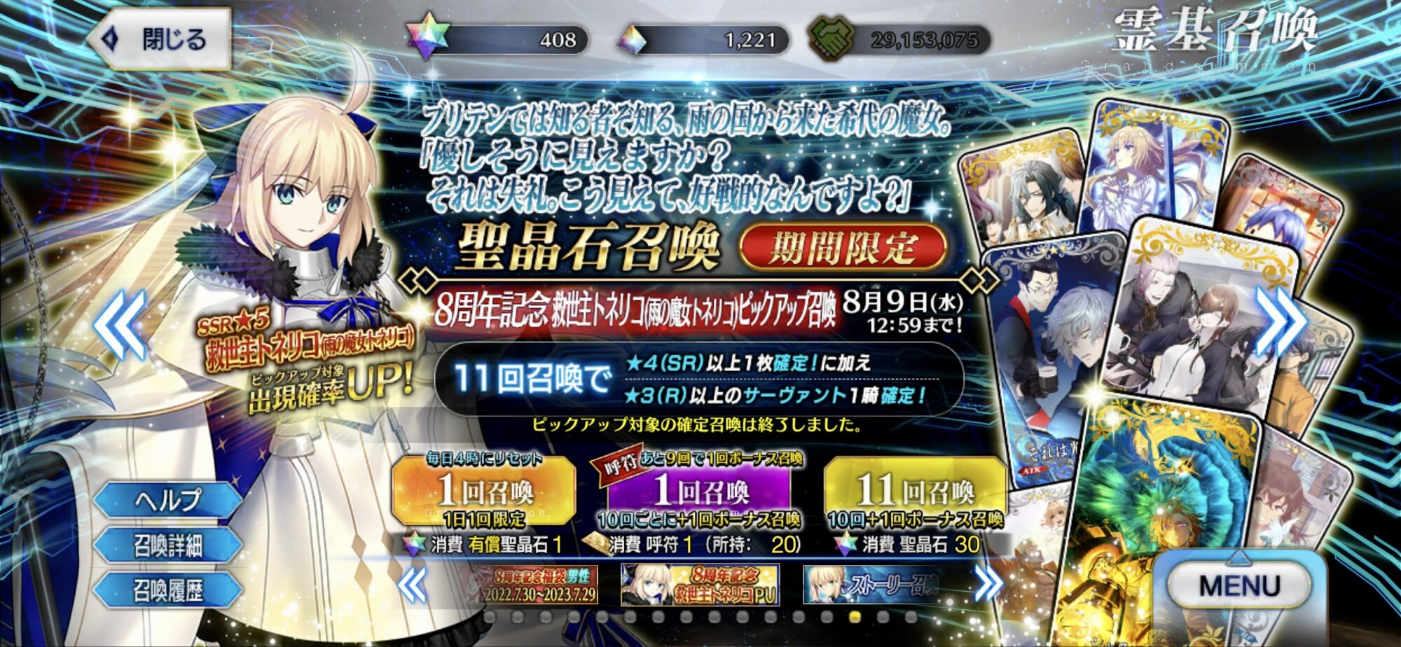 2日目:夏イベのシルエット3騎(妖精騎士?)、オベロン、周年トネリコ(水着モルガン)