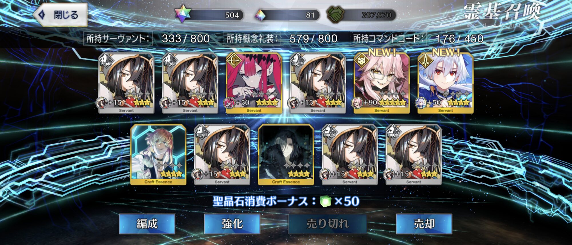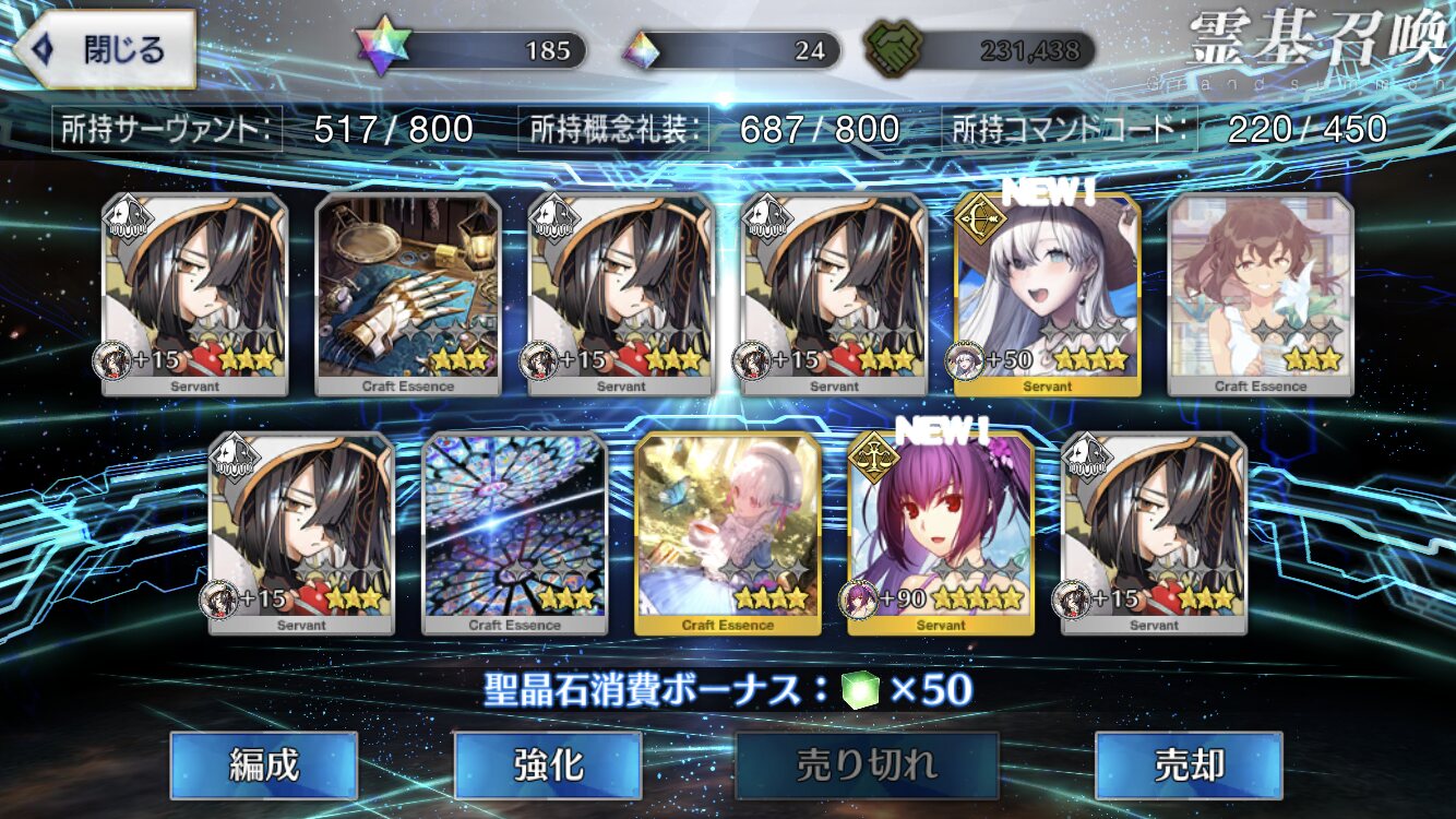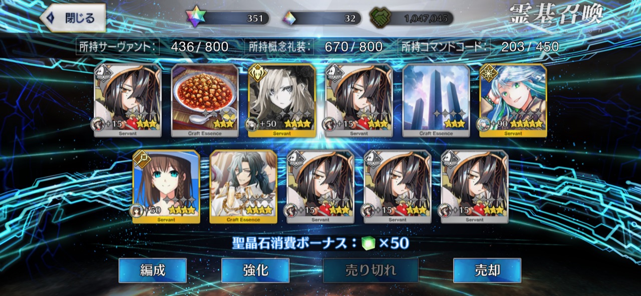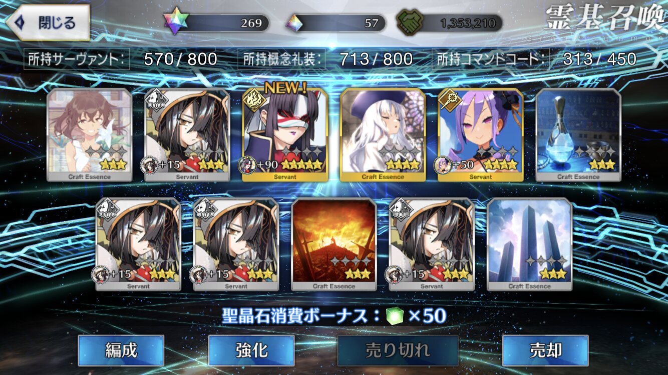 20連とも礼装の最低保証だったヨ……(涙のあまりスクショ忘れ)マテリアル見た感じサバフェス2の黒幕は陛下っぽくはあるけど、きのこのことだし一捻り二捻りあるんやろなって