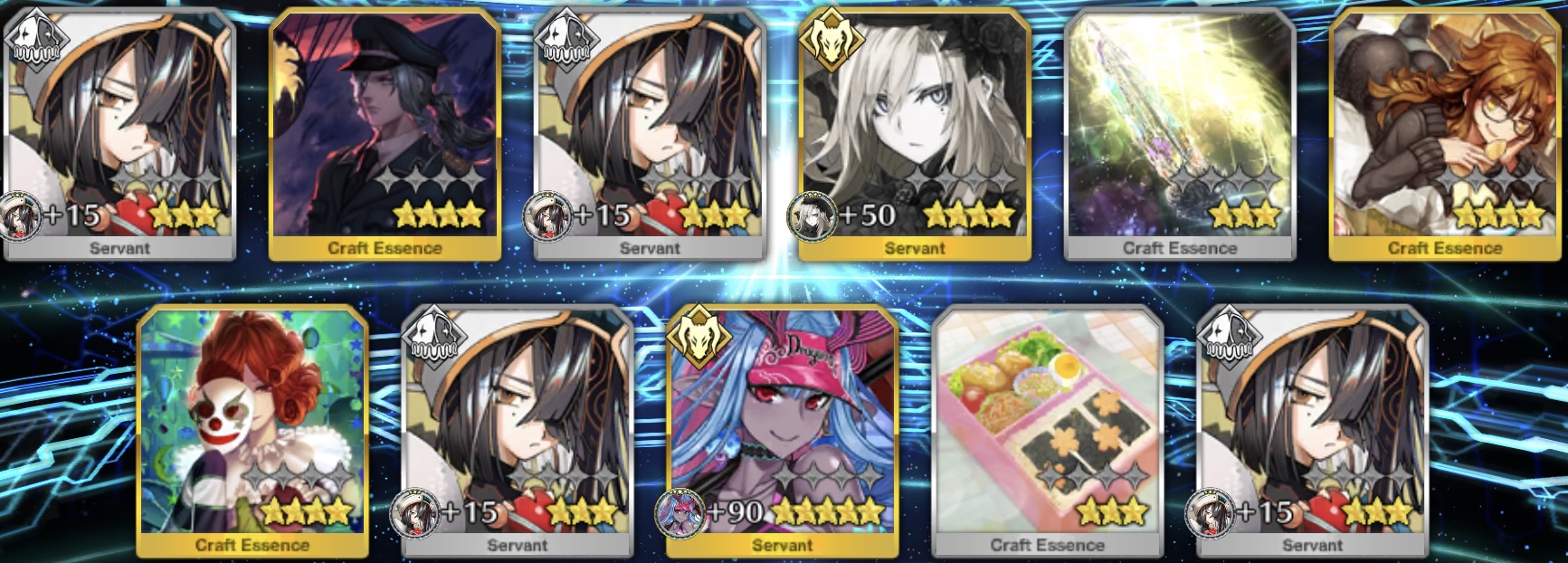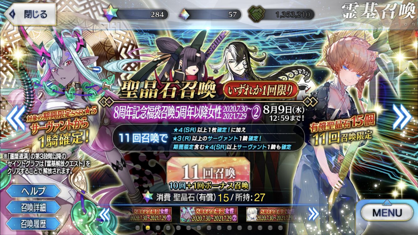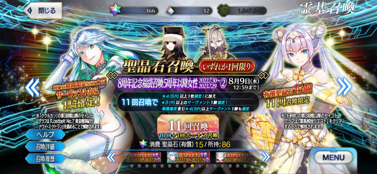僕が作ったさいきょうのガチャしかしいつからか石を溜めて引きたいサーヴァントは突撃するよう心掛けているので、5周年以降の福袋となると被りが少ないとか狙っている未召喚一点狙いとかほとんど出来ないなあ…