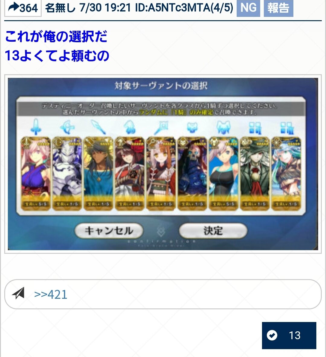 まぁ好きなキャラの宝具重ねの為に選択しなおすよね>>918