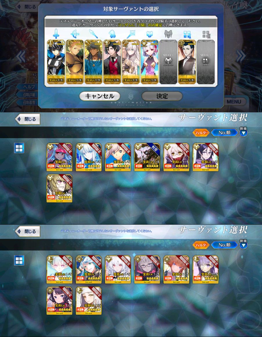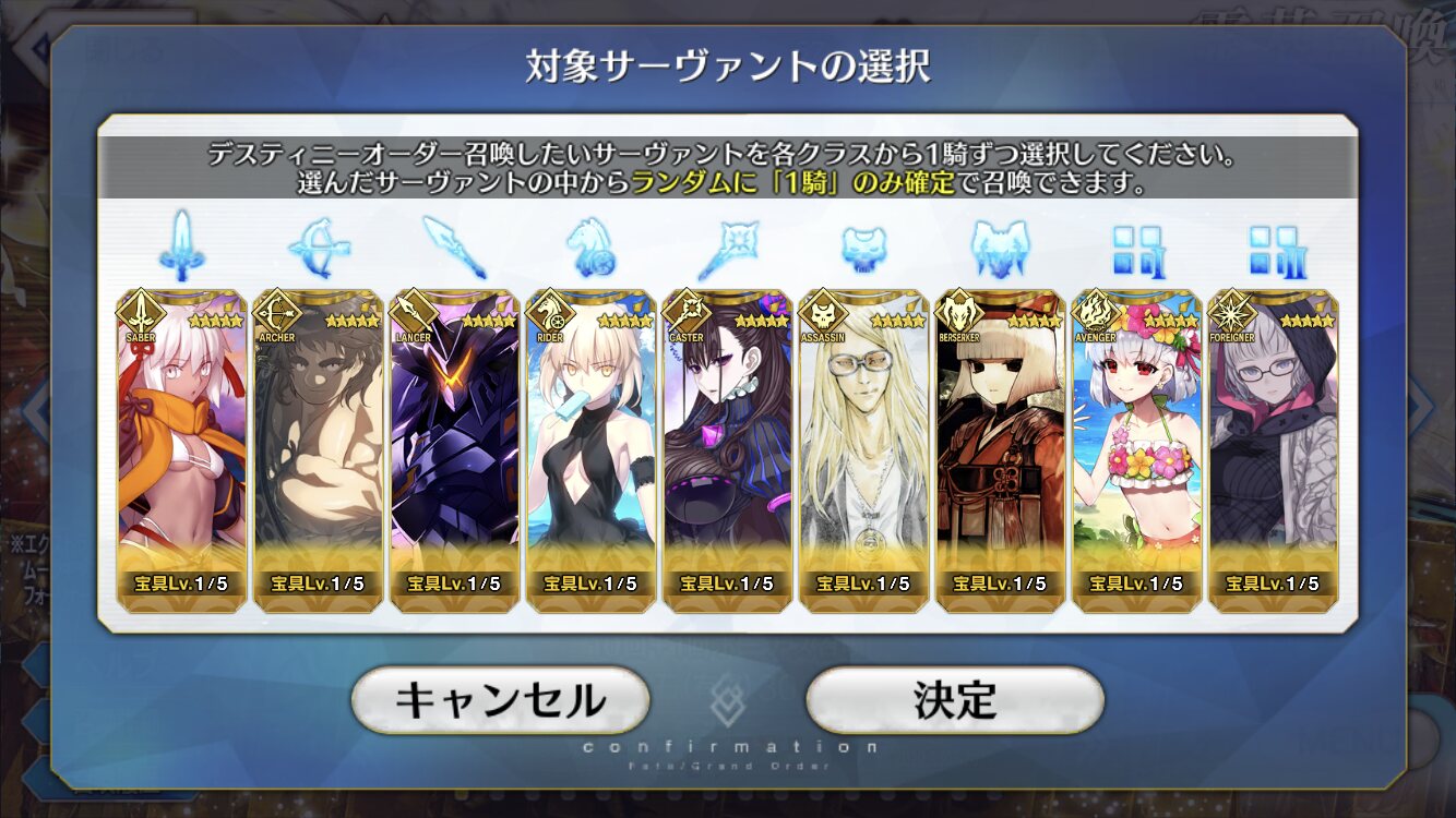 水着に備えるために周年は回避するつもりが前提からちゃぶ台返しされるとは…デスティニー選んでたけど決められない枠後回しにしてったら全部空欄になったのだわ…