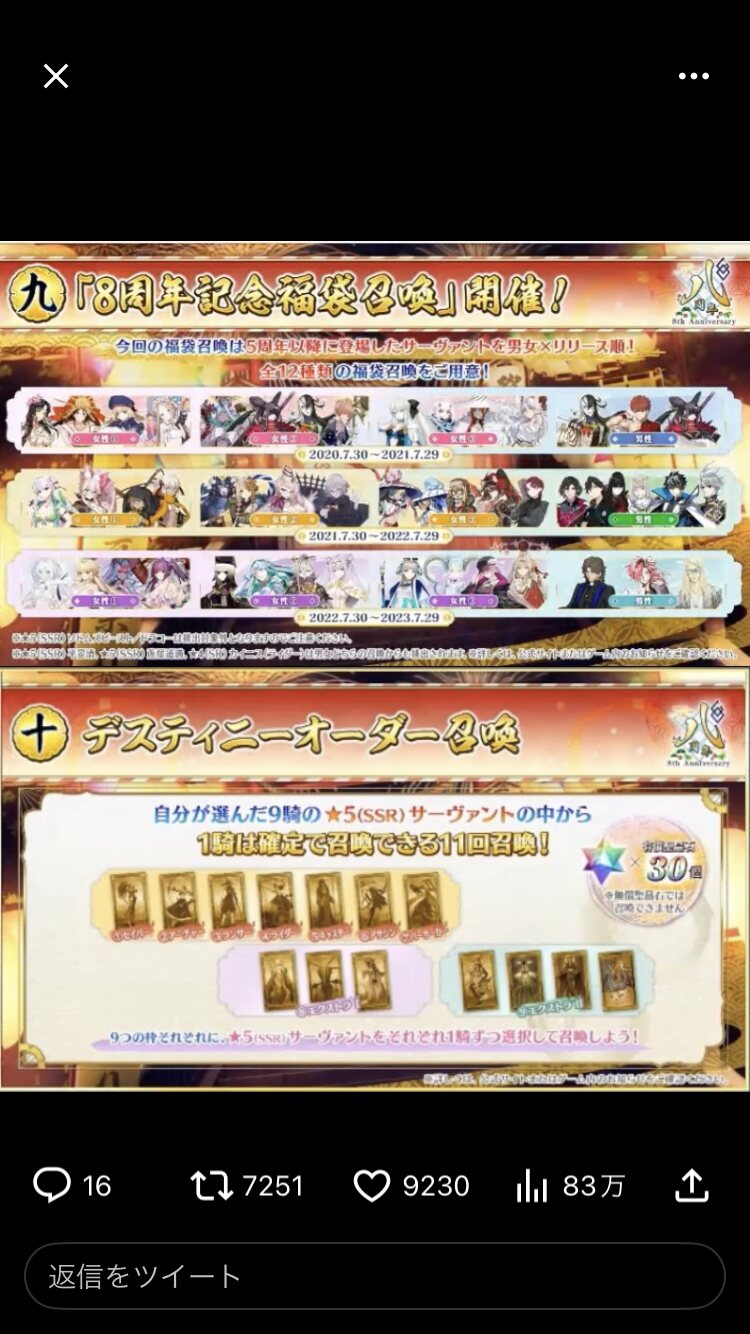 まあこの時期は周年鯖爆死とか
