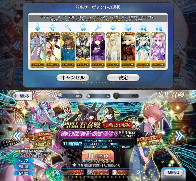 これもまた運命か……!ディスティニーのアーチャーとアサシンとエクストラ1をどうするか迷ってます