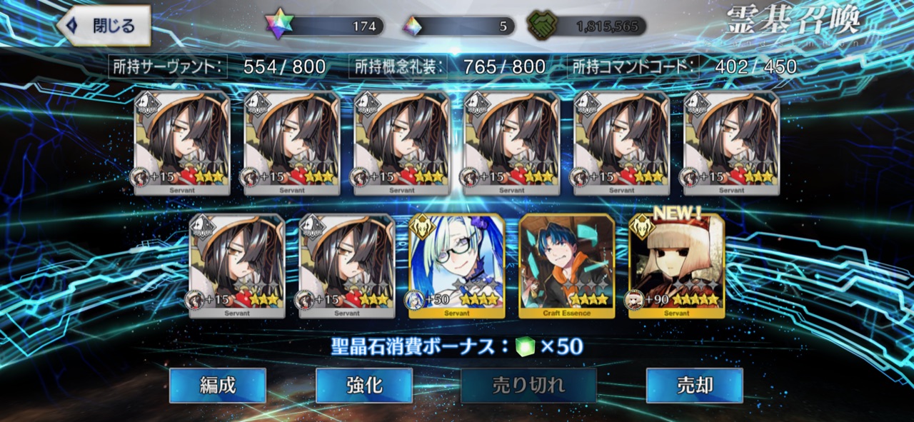 これでまた『オーディールコールを5積みで回る編成とそれ用のサーヴァント』を絆Maxまで使い切ってしまうのが早くなりそうだ。