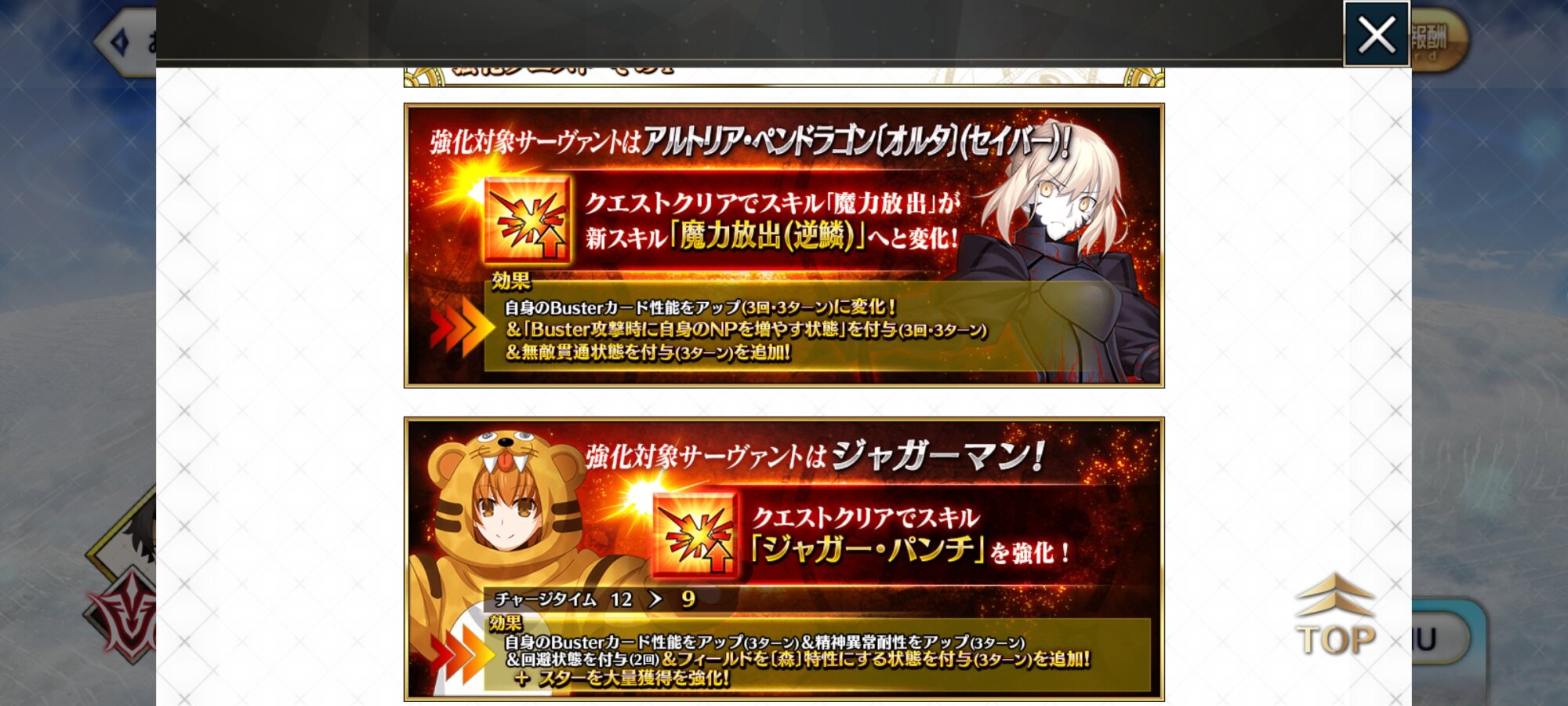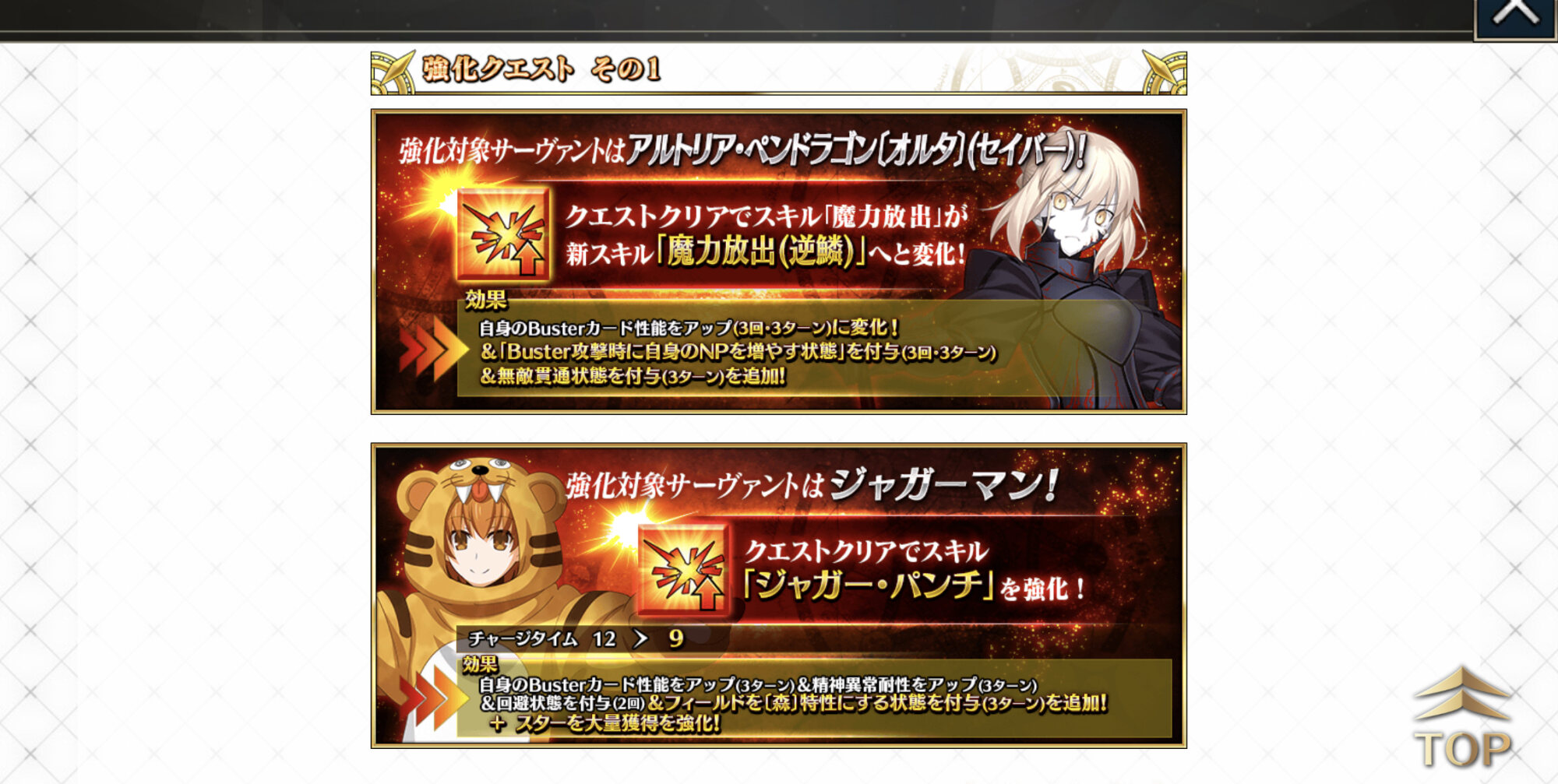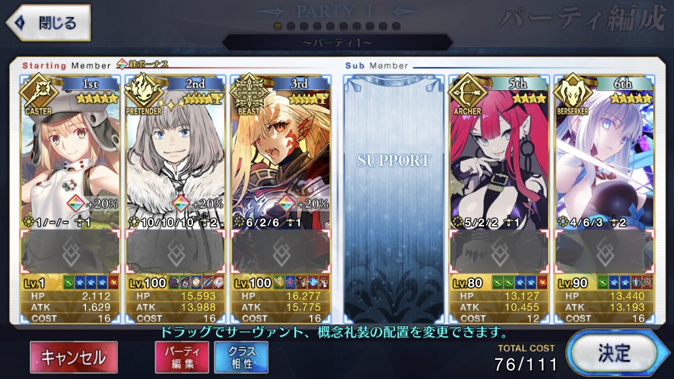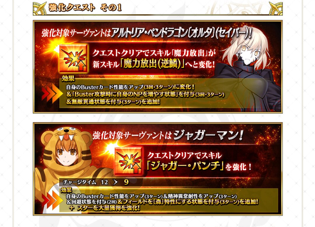 思ったより森にした時の恩恵が薄いのが勿体無いな。パンチ以外もまた強化されると良いね。アルトリア・オルタのは10%ですね
