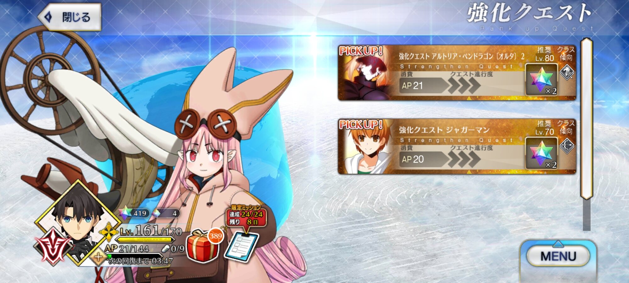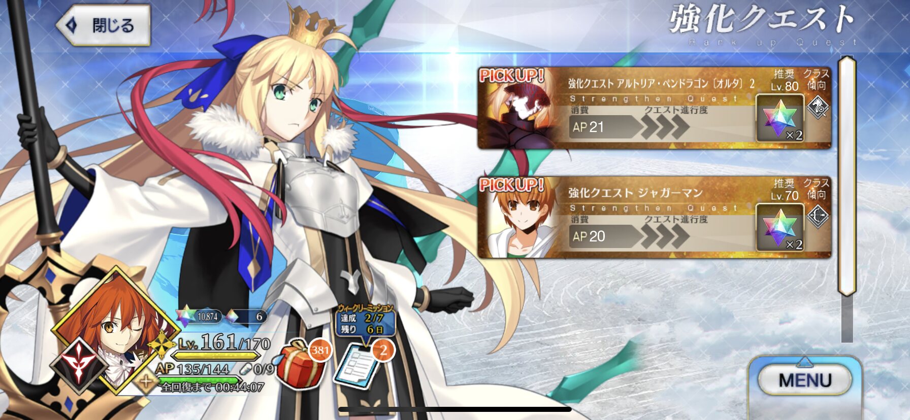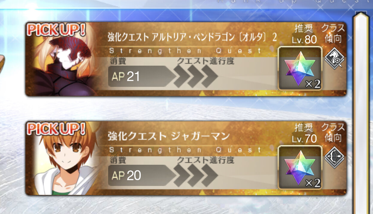 とりあえずジャングルさん大丈夫かちと心配ですね(焚き火の様子を見る図)おお、強化クエはアルトリアオルタとジャガーマンか!