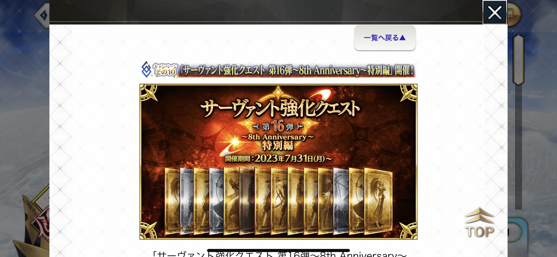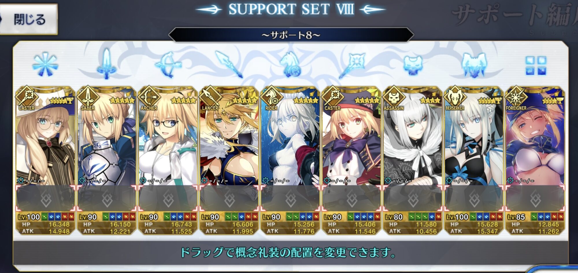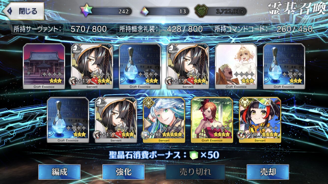 何分サーヴァントの実装数も霊衣も多いから上半期の実装抑えても重労働だろうしそういえばちょっと前に初心者マスター(最初はマシュがオールに置かれてるだけだった。名前はちゃんとしてた)と少し間を置いてから再度見たらマスターレベルは上がってたりしたからちょうど枠余ってたしでフレンドになったんだけど、今はサポートもしっかり埋めてるし頑張って続けてほしいね……