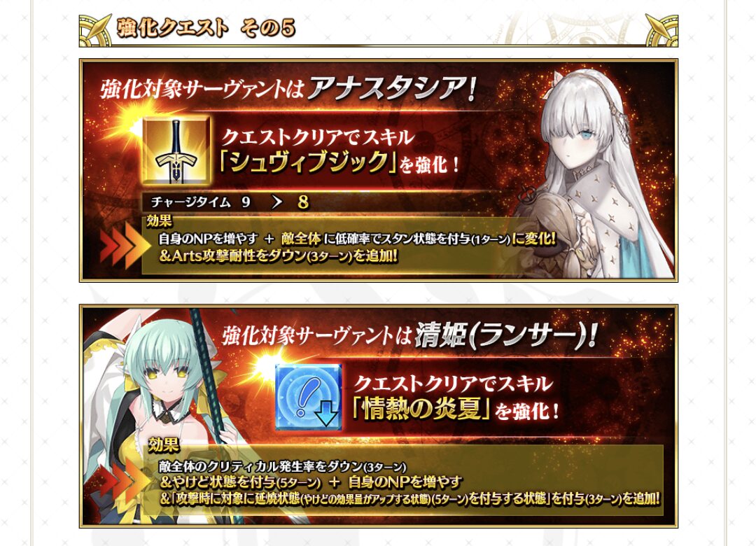 清姫は順当な強化貰えたのはありがたいところ