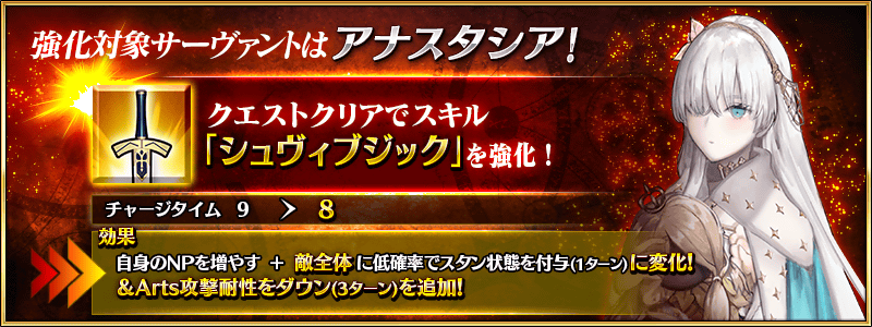 妖精騎士の1人は同行鯖、前と同じなら薄い本制作メンバーじゃないかと思ってるアナスタシアのデバフ倍率どれくらいなのかねー