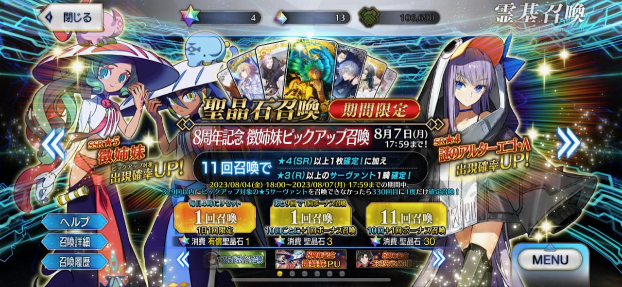 去年の周年日替わりPUが8月10日(水)17:59まで、水着イベが8月10日(水) 21:00開始でした>>948