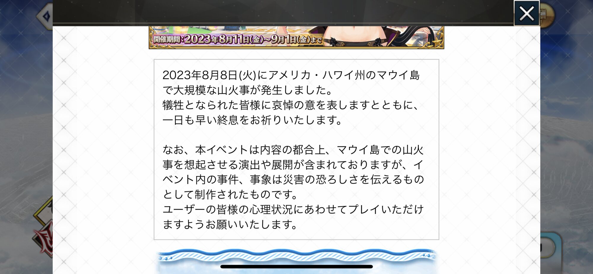 メンテやったのハワイっぽいとこ舞台で火事を思わせる描写があったからなのだろうか