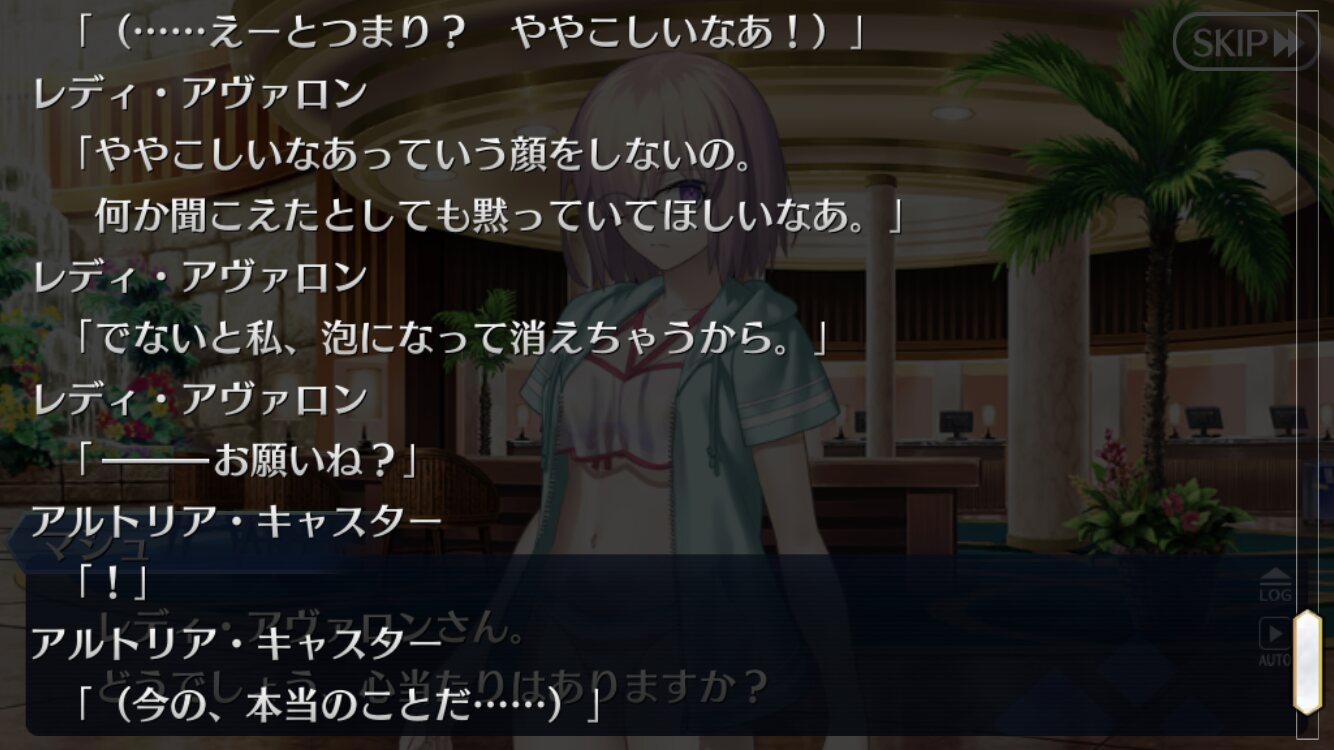 アヴァロン状態でコレはちょっと破壊力ヤバイな最初の謎言語の主は「■■■■」だけど人語の時は「???」だった…これ別人説ある?背景アヴァロンだから候補は絞られるけど。