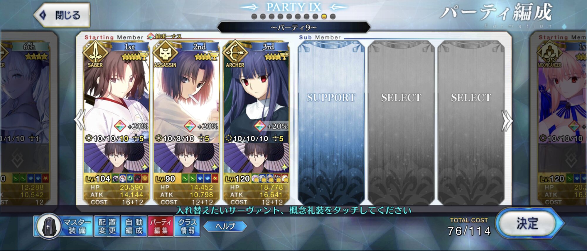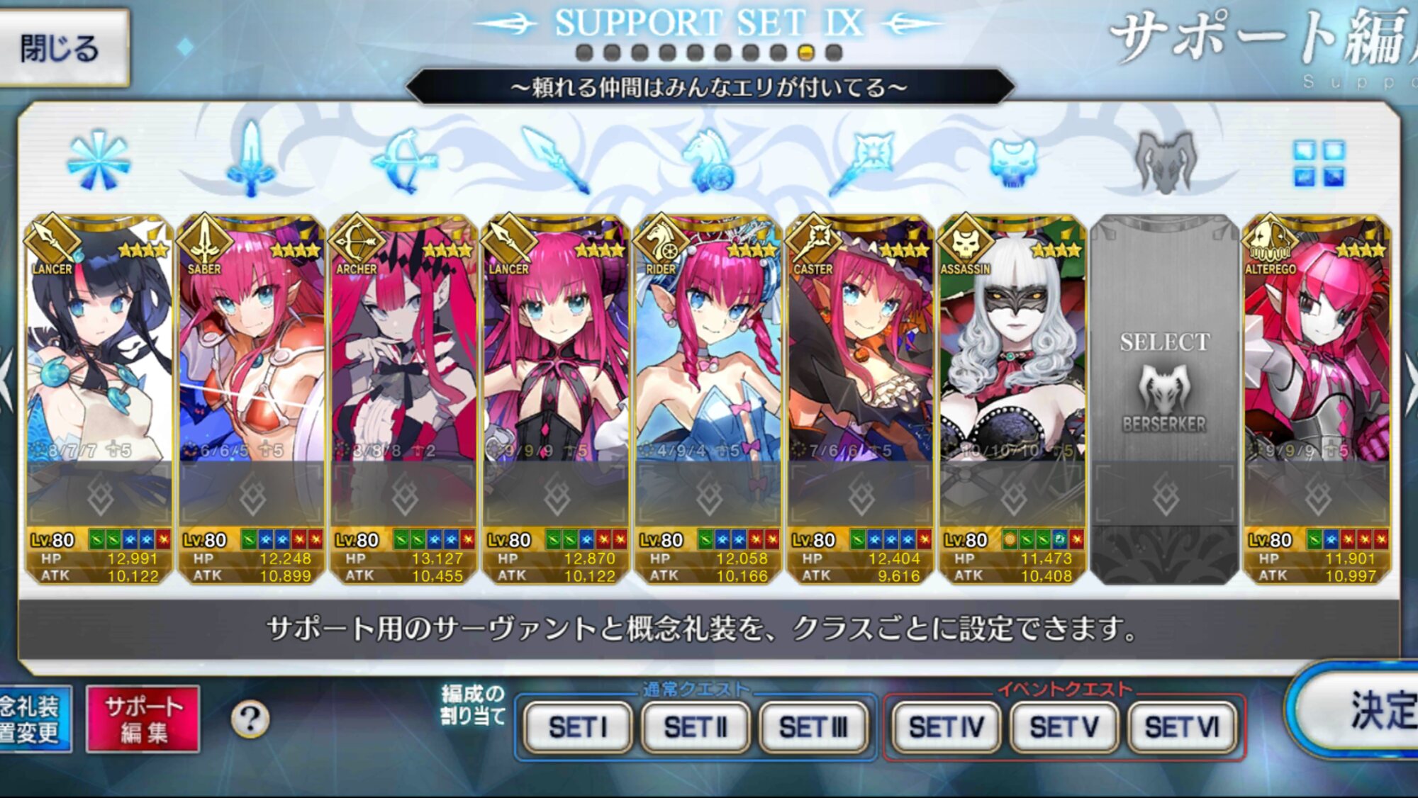 まあバサカで全部汎用させるって線もあるけど全体攻撃系のボスとかも出てくるからやはり基本は7クラスで1騎づつスタメンできる鯖を作ることが一番だよね。>>52