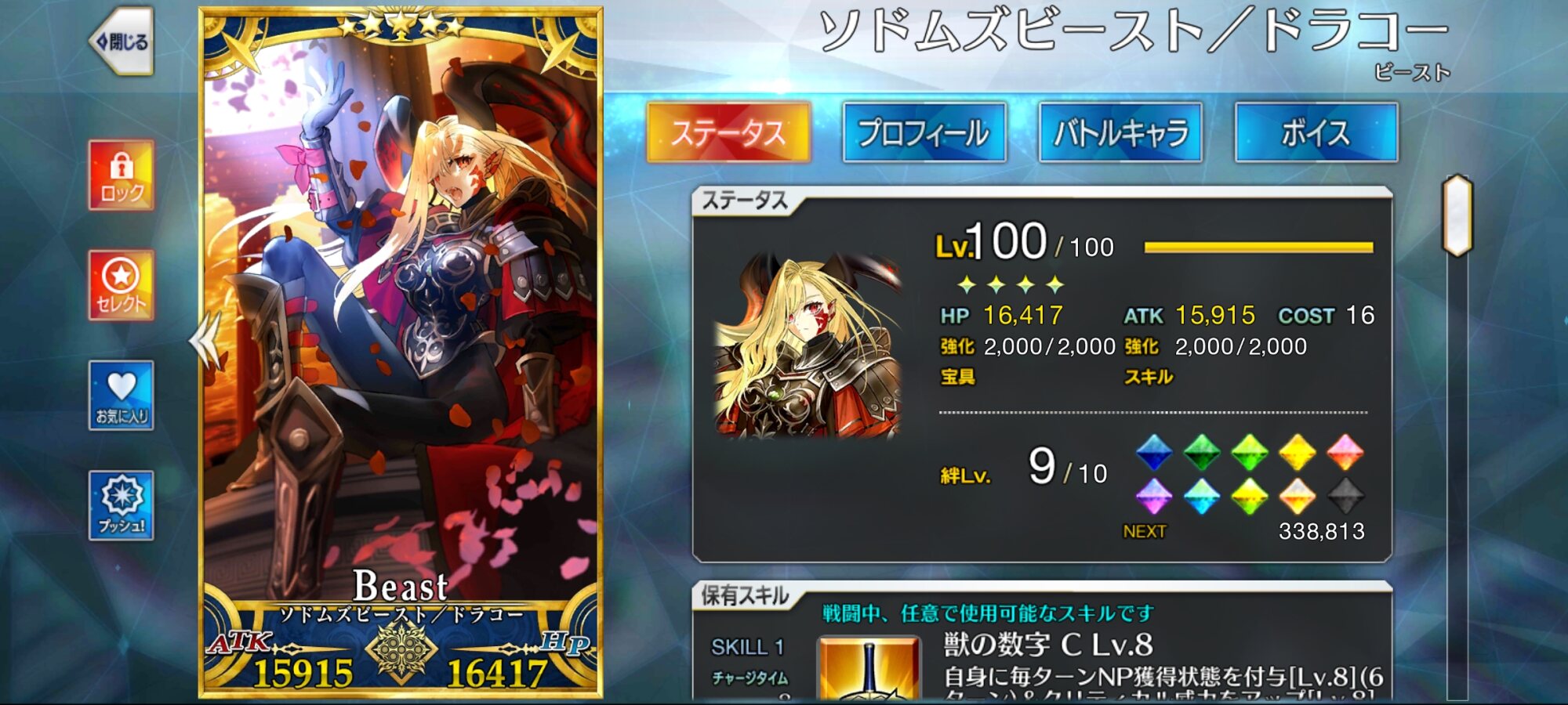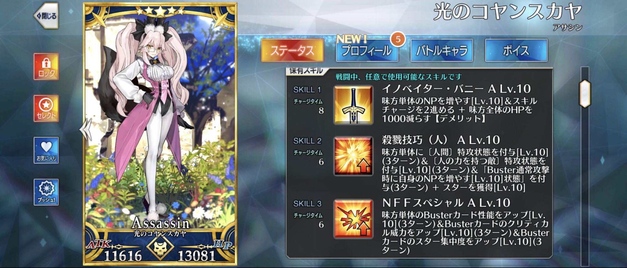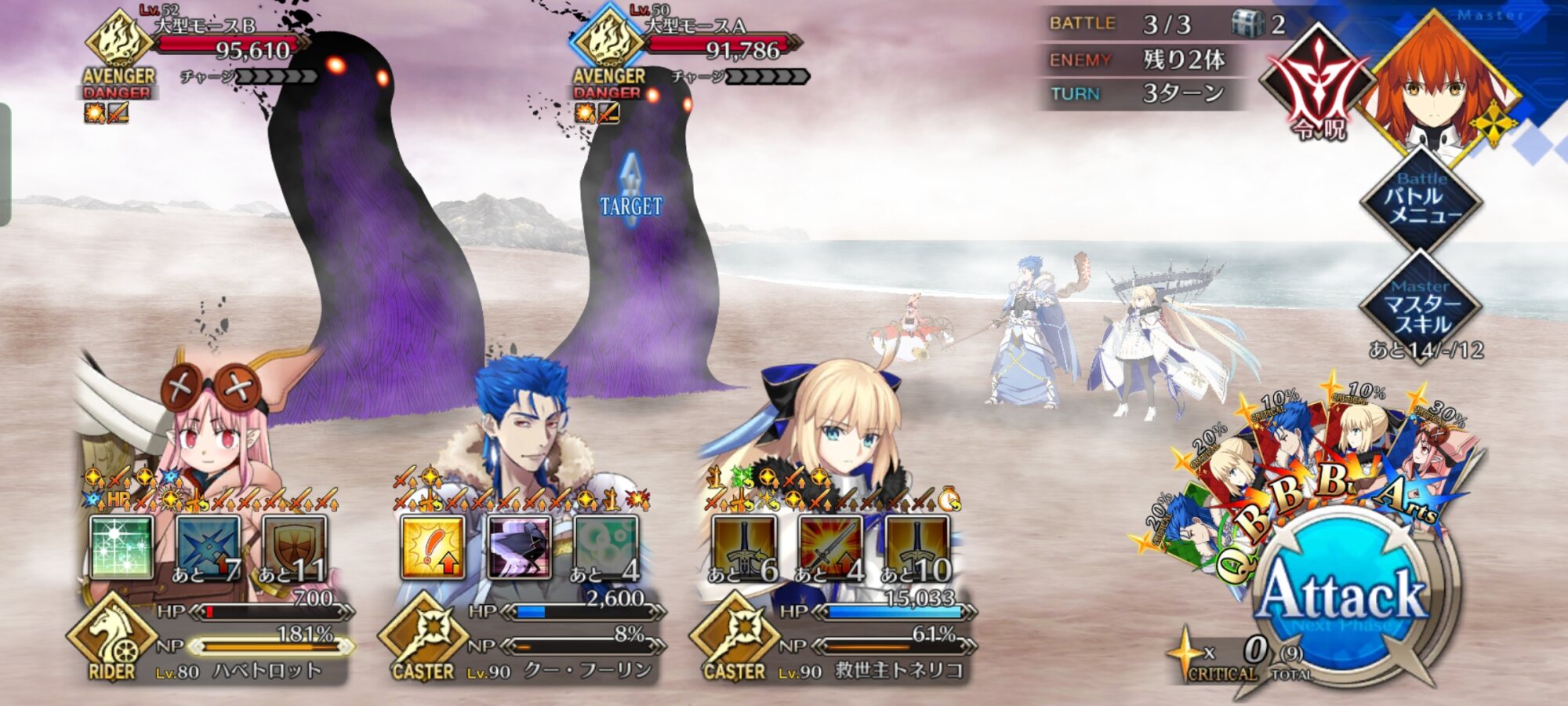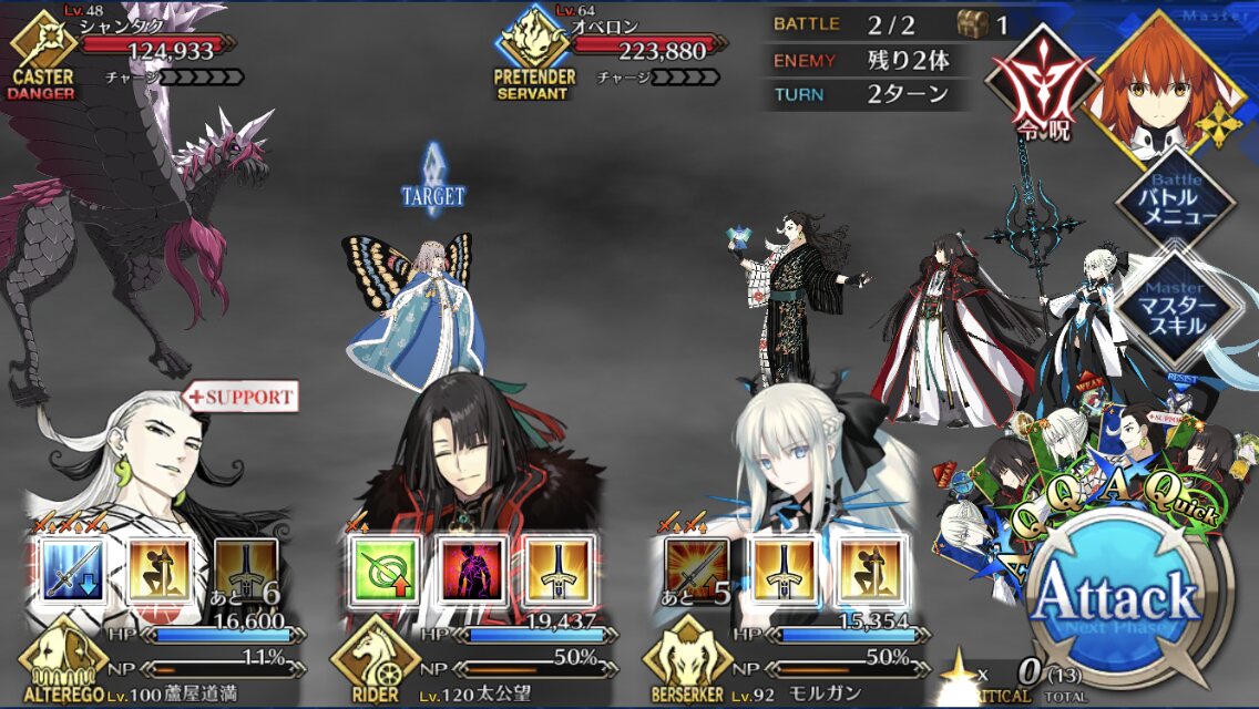 クラス相性有利、A主体のためサポートのキャストリアともベストコンビ、スキル3で特攻が付く上、自前で無敵も持ってるので相手宝具の対応力も高い。