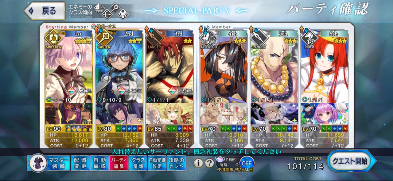 HP4000くらいだからほとんど育成してなくても勝てはするけど強い攻撃宝具ばっか持っていくと逆に自分の首絞めることになるよねこれ(一敗)すまぬな…オルジュナで脳筋してたから、