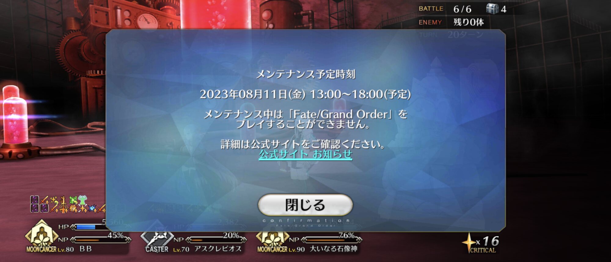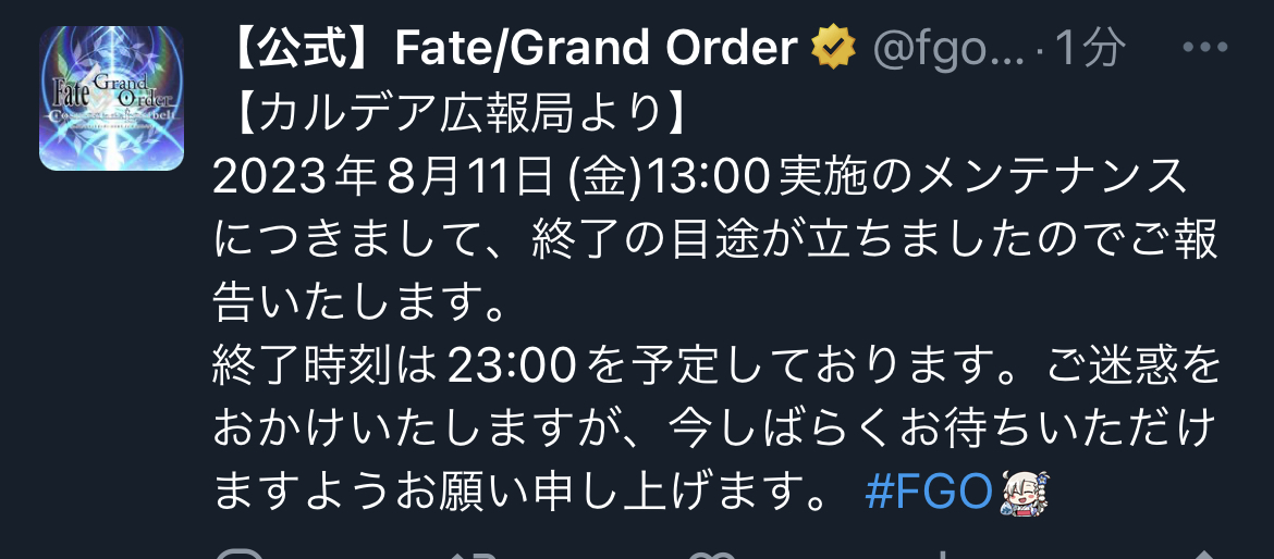メンテ23時終了ですか。