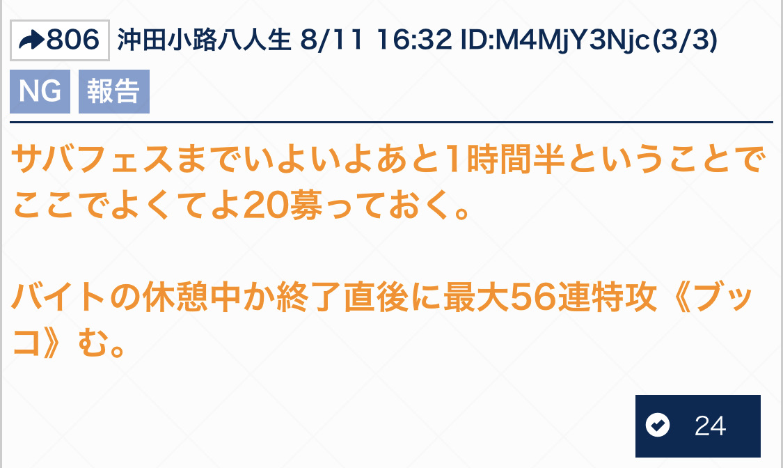 そしてペースダウンすると、アツアツなら美味しいフライドチキンも冷めるとクドい油と塩分の塊にチェンジすることで余計にペースが落ちる。メンテ明けまでに15いいねで20連回させて下っせ
