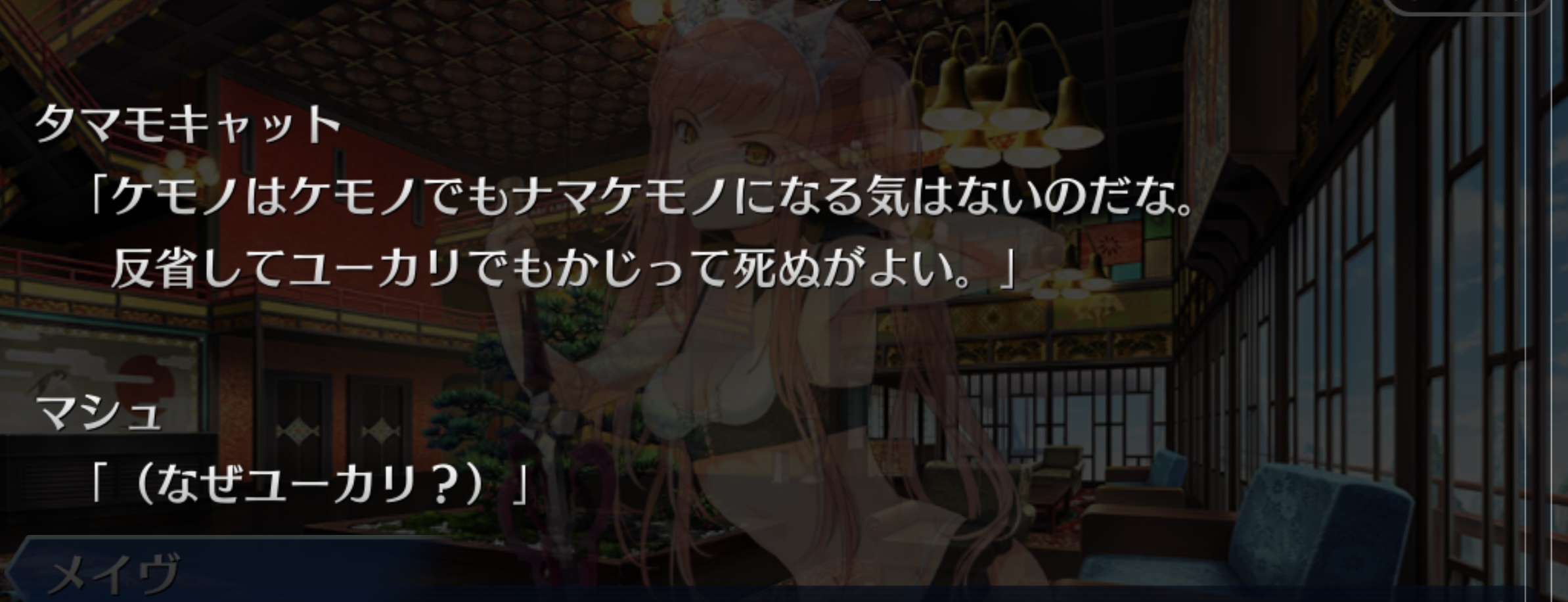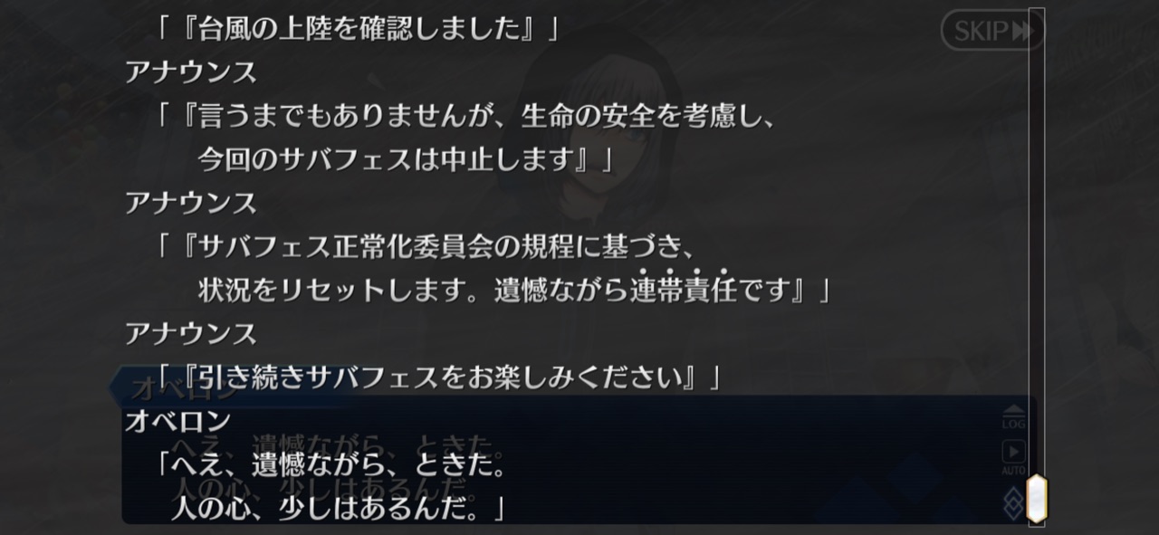 毎回楽しみにしてたから一寸悲しい。……ここら辺も一括で差し替えたりしたんだろうか。正常化委員会の会長がアルトリアアヴァロンでもモルガンでも