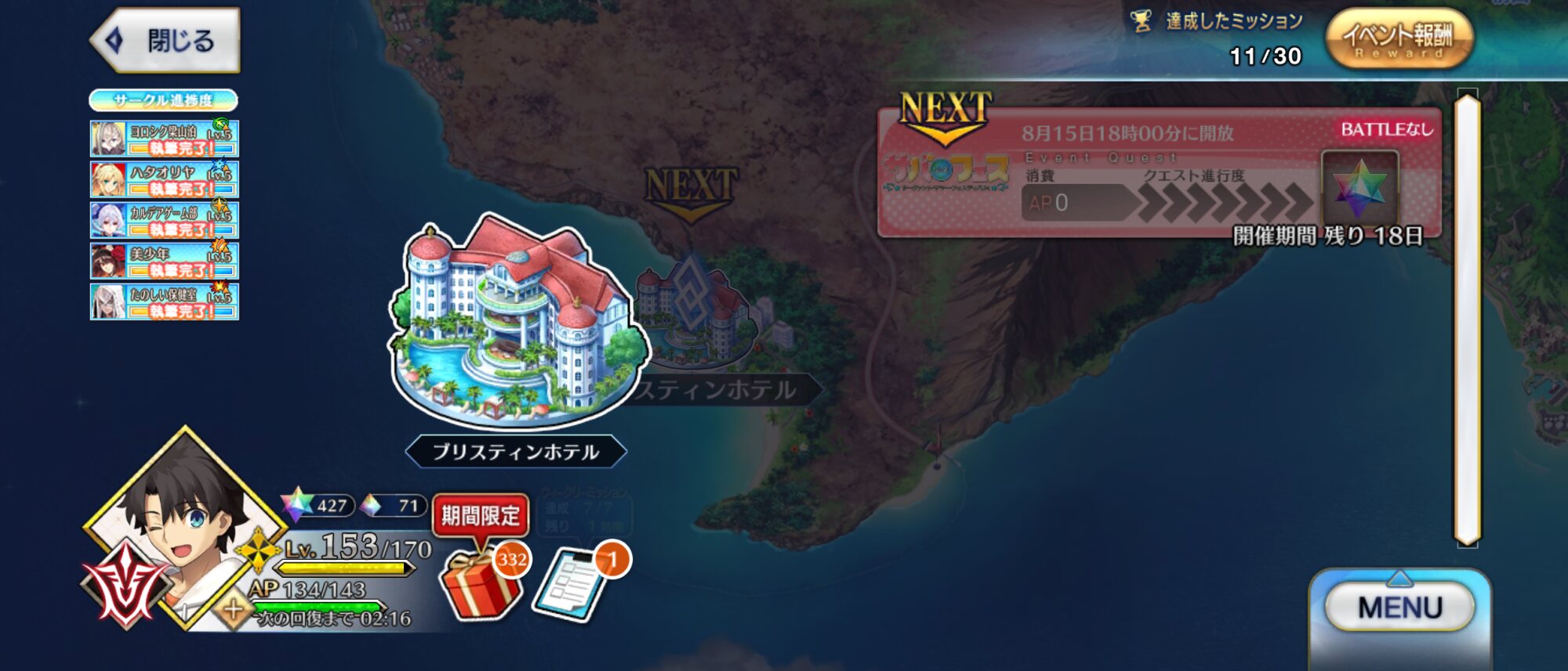 メリュジーヌは時間にルーズだからなマスター来たらやる気出すはず。