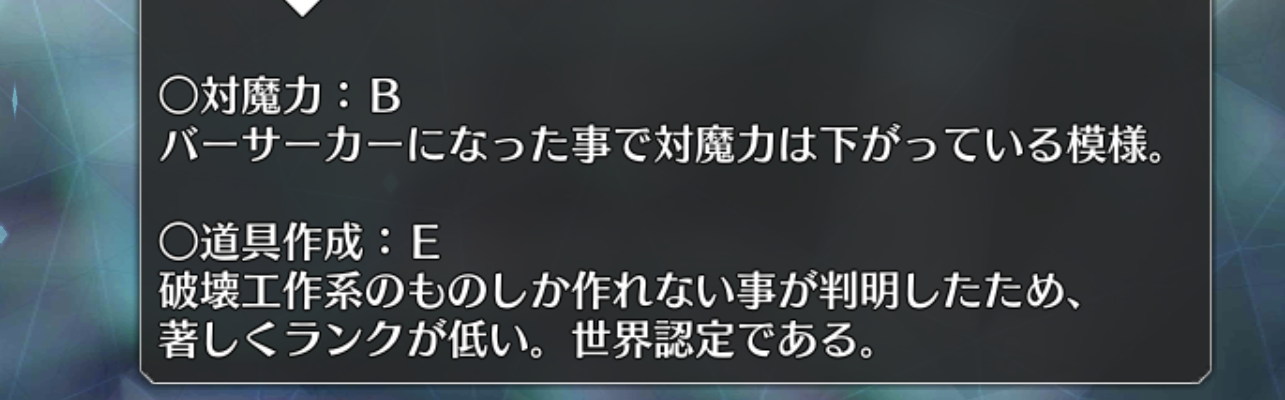 そういえばバゲ子とメリュ子はPU前性能開示は結局なかったな(トリ子は敵側でスキル宝具打ってもらって確認できた)アルトリア・アヴァロンでしょオベロンがそういう言うこと言ってるし。王の人の心はわからない。