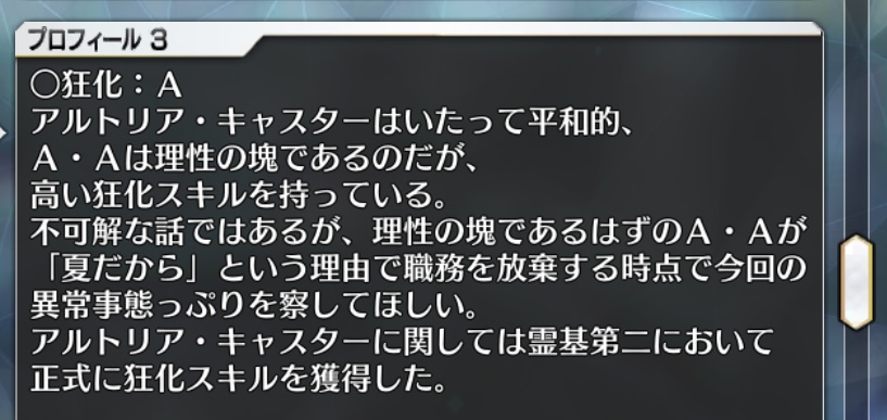 リセット前にA・Aが口にする「連帯責任」とはアルキャスとA・Aがそれぞれの役目を果たさなければ事態の解決ができないことを指していると予想。ぐだは三十六番目のアルトリアが好みって言ってるけど、梁山泊の三十六番目と言えば燕青…
