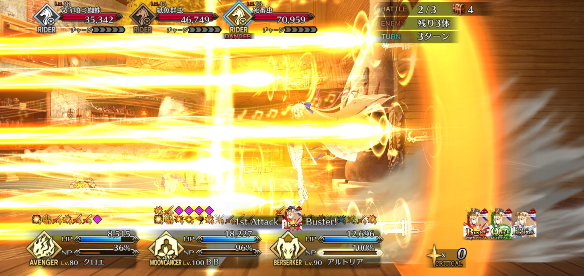 弊デアのクラススコア振った状態の初代様擬似単騎で周年のダゴンしばいてた時に、宝具QAEXでQもAもクリ当たりすると星45個前後出してゲージ100%回収してたから似たような事が出来るかもしれない>>64