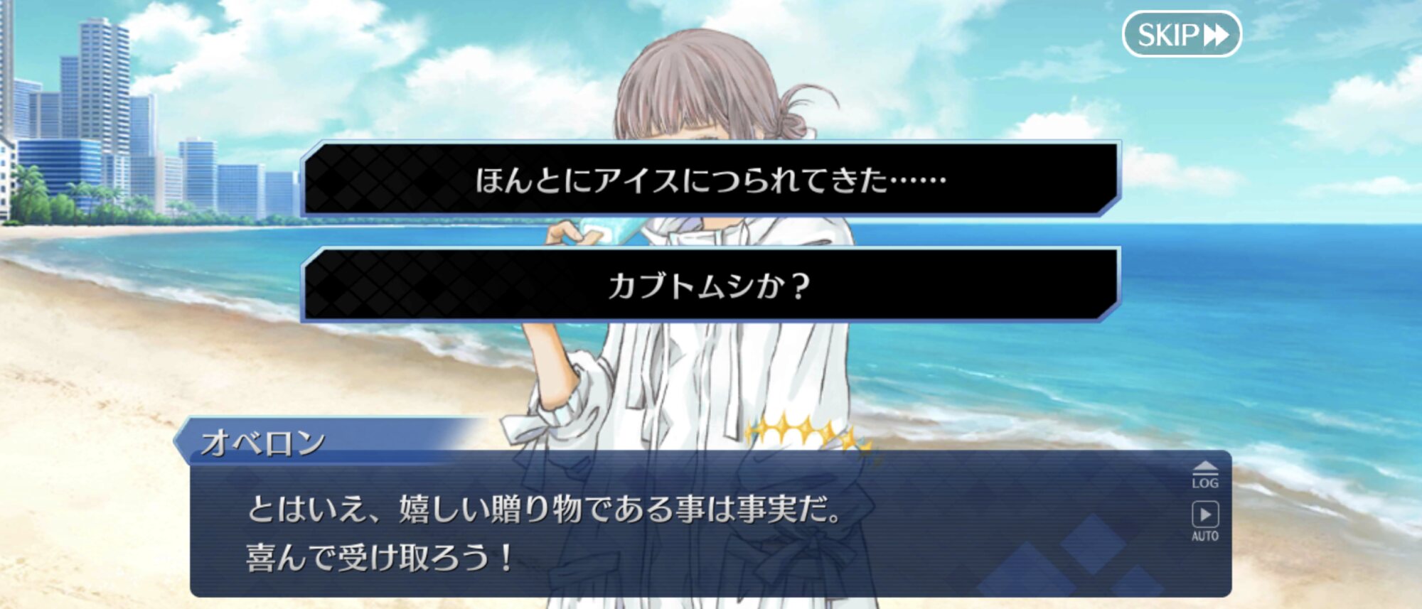 冒頭の「あまり待たせないように」は、そういうそんな…まさか夏イベCMの最後の陰を歩く陛下が、ただ、マスターが来るのが楽しみでソワソワしてただけなんて…