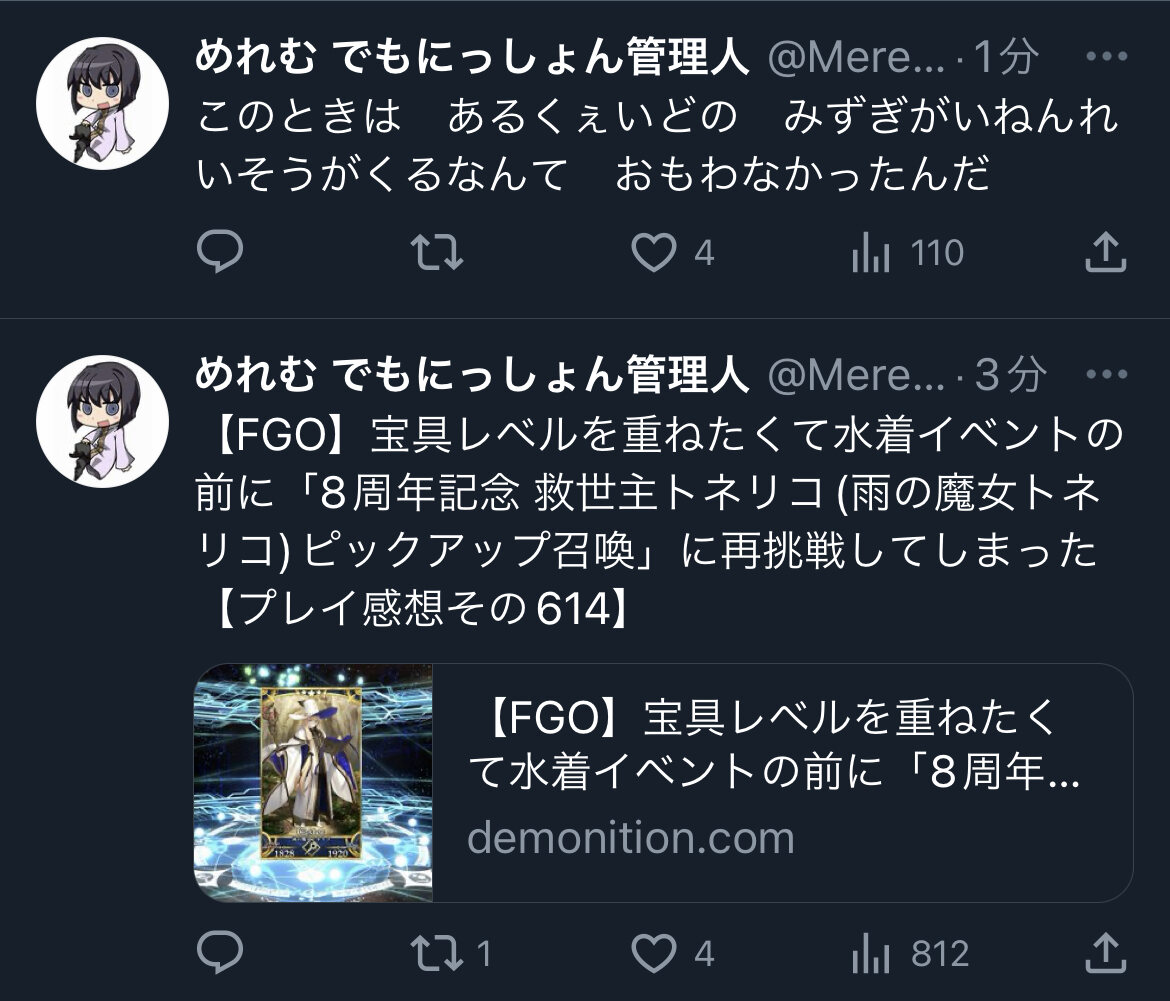 R18関連話題、よくてよ無しのガチャ結果、実装から二週間以内のシナリオ及び開催期間中のイベント内容、進行度依存の報酬、最終再臨や霊衣解放の画像や話題は専用スレにてお願いします。