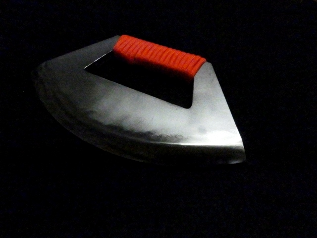 宮本武蔵が晩年護身のために考案したものだそうで見た目はまさかりの刃に持ち手をつけたようなものだとか。