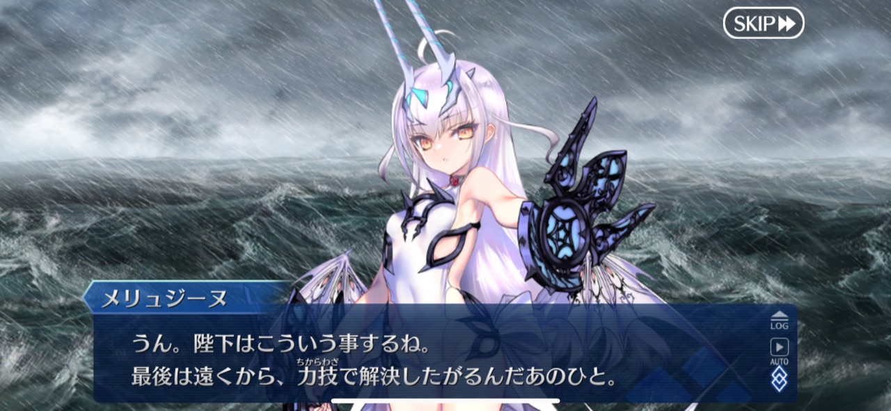 信頼しても信用してはいけない相手なので、半分ぐらいは嘘だと思っとかないと後で大目玉食らうかもしれんメリュジーヌの弱点、パーシヴァルだと思っていたら泳げないとは意外だった。礼装のBBとモードレッドはでてきたけど、パーシヴァルはいつでてくるのかな。