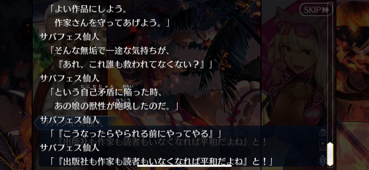 ちゃんと地味にゆらゆらしてんの好きそう考えてみるとヤラアンのスキルの味方をスキル封印する代わりに強化する性質(没個性にする、しかも対魔力で弾かれる)だったり