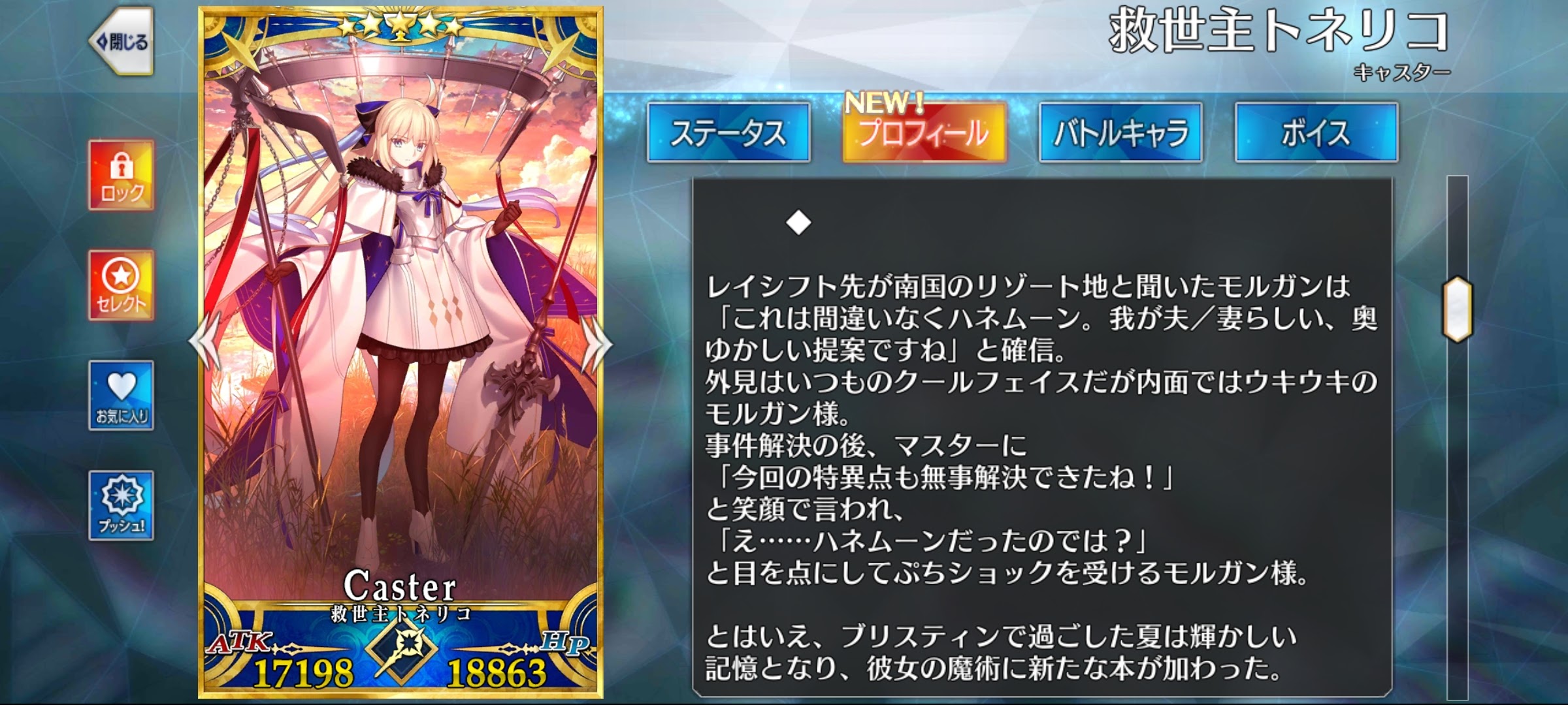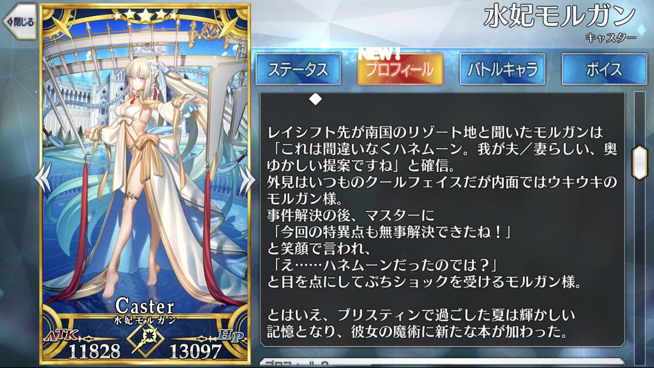 もっと出してもいいのよモルガン陛下、次の特異点が南国と聞いて「ハネムーンです!」と密かにはしゃいでたの可愛い。そして期待と違ってプチショック受けてるの可愛い