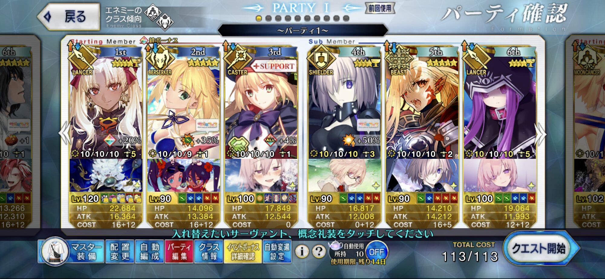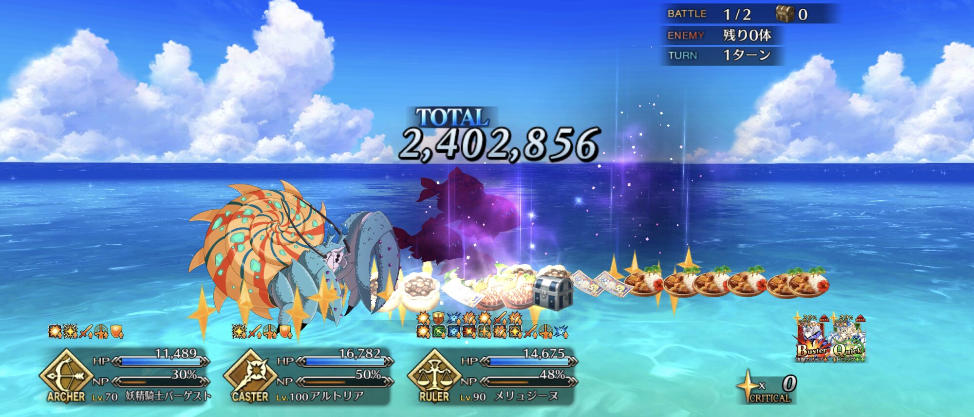 90++を凸特効礼装もちバサトリア+水着伊吹+キャストリア+オベロンでこう