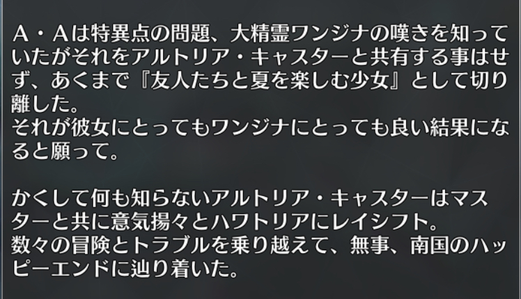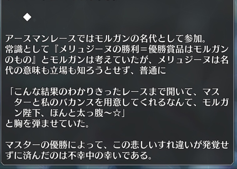 もしかして「テスカトリポカ」と名前が出なかったのもそれが関係してるかも?更なる後日談が読みたかった。妖精國の後日譚としては最高のデキ故のプレイヤーの欲。
