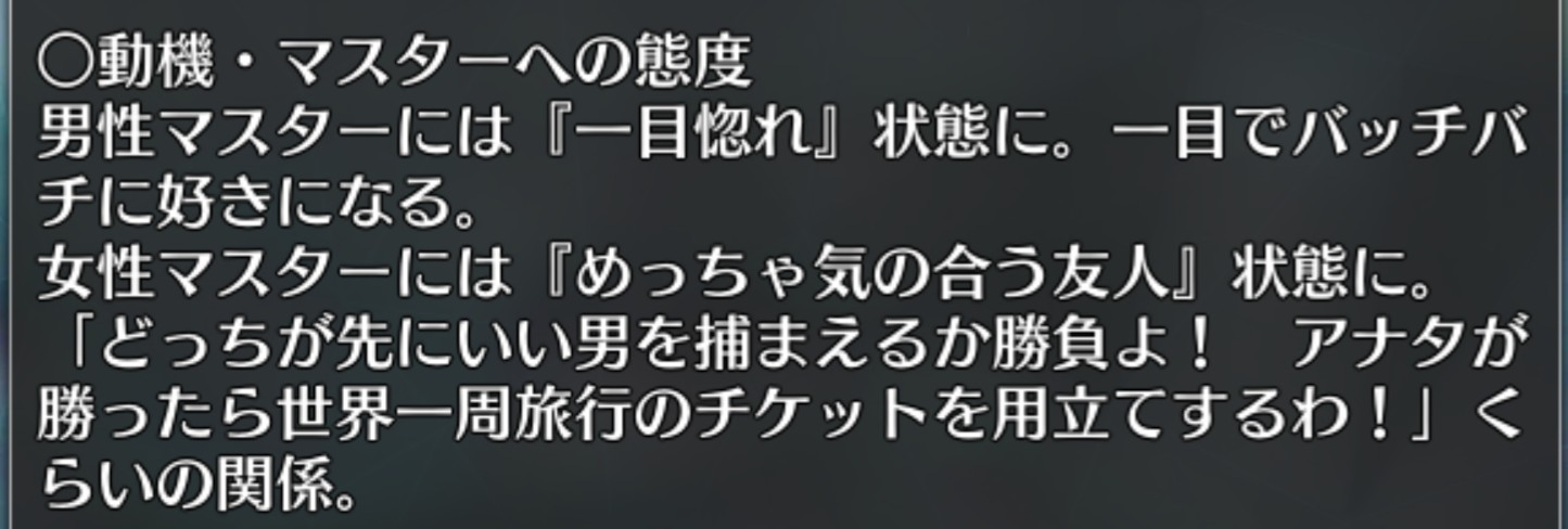 なお、カルデアスタッフに対してはナイトように振舞う>>935