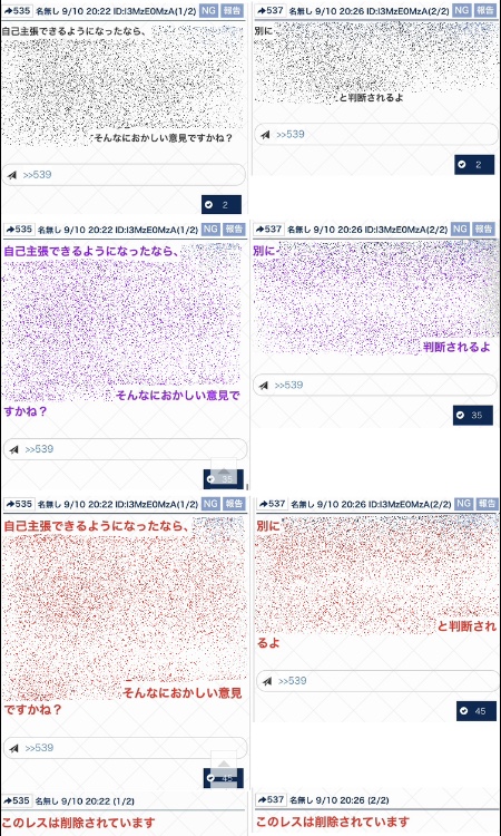 「はっはっは、こりゃ青、黄、紫、赤色とりどりの『このレスは削除されています』が見られるかもな〜!」