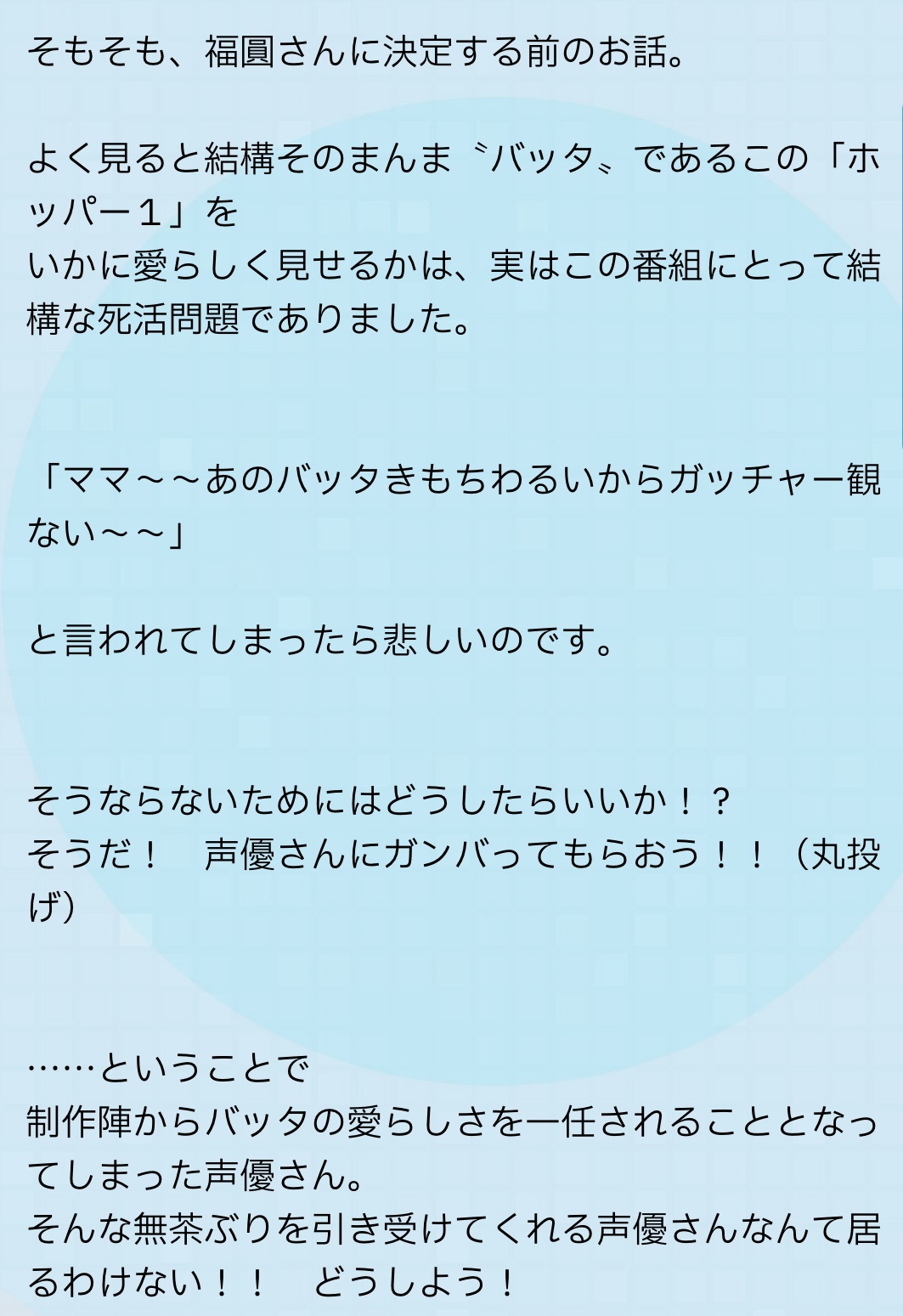 そりゃ沢山お話見たいけど、そのせいで明らかな路線変更とか話の矛盾とか出てきたら目も当てられないから、絞られてもしょうがないのだろうけど。