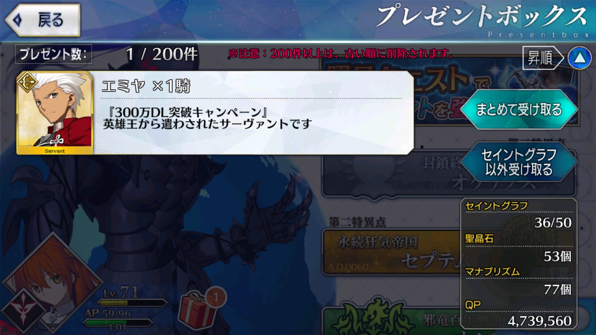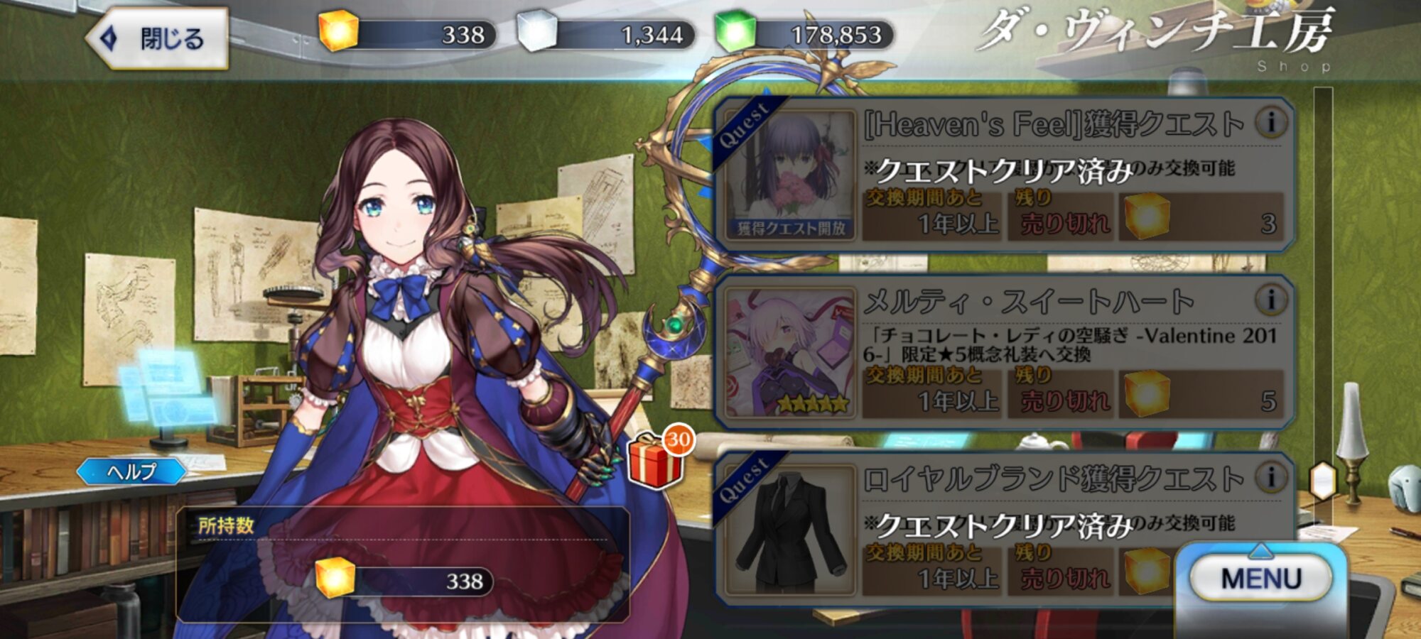 よく見るとQPもほぼ火の車ですね…8年やってたらさすがに骨や牙は余裕出来たけど、鐘や黒曜石はまだまだ足りぬ